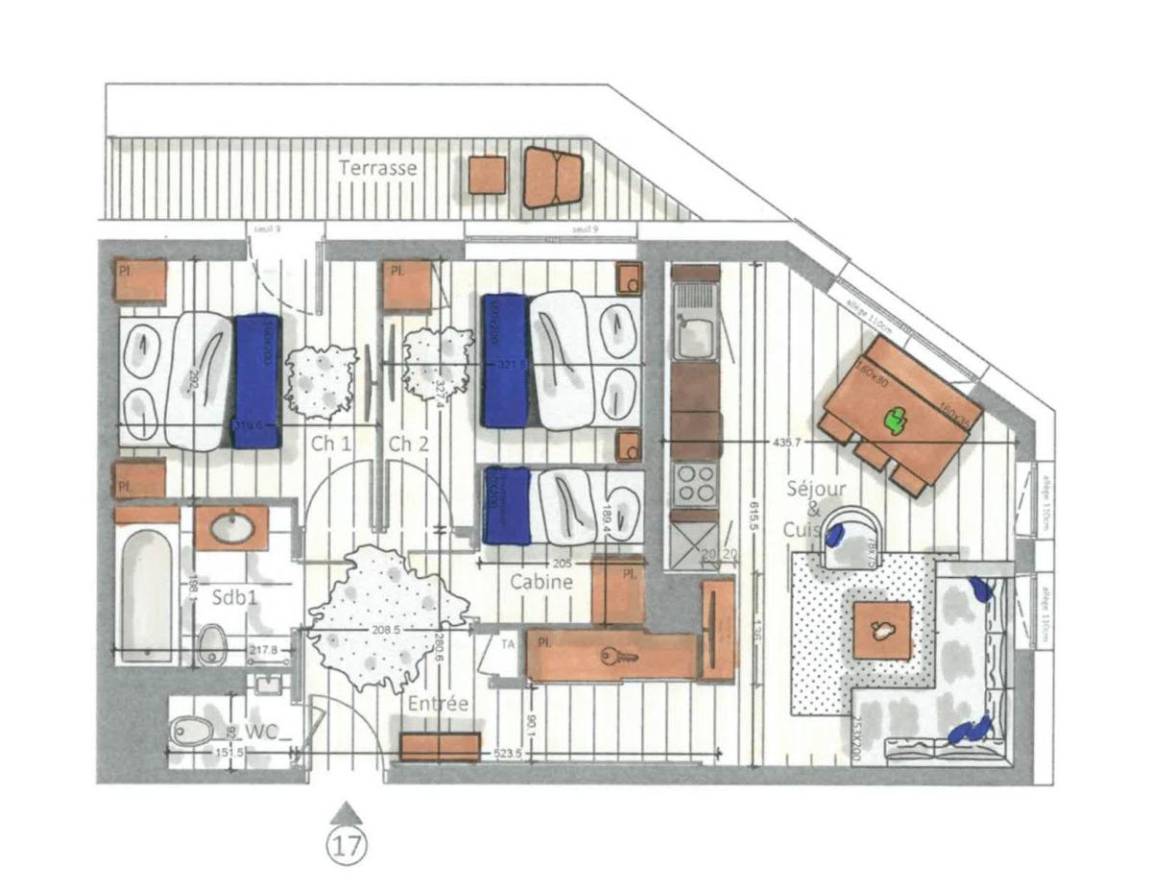 Fläche von ungefähr 62 m². Erdgeschoss. Orientierung : Nord. Wohnzimmer mit Ethanol-Kamin. 2 Schlafzimmer mit Doppelbett. offener Schlafbereich mit 2 Stockbetten. Küche mit Wasserkocher, Kaffeemaschine (Nespresso), Backofen, Toaster, Dunstabzugshaube, Waschmaschine, Geschirrspülmaschine, 2 Herdplatten, , Kühlschrank. Badezimmer mit Haartrockner, Handtuchtrockner, WC. separates WC. Terrasse. Die oberen Betten sind nicht für Kinder unter 6 Jahren geeignet.