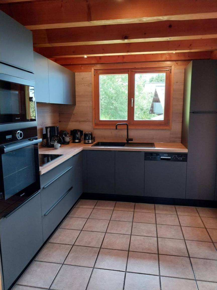 Für die Sportlicheren stehen in der Umgebung zahlreiche Wanderungen zur Verfügung. Fläche von ungefähr 124 m². Orientierung : Süd, West. Wohnzimmer mit Kamin. Schlafzimmer mit Doppelbett (140), 2 Stockbetten (90), Waschraum, WC. 2 Schlafzimmer mit Doppelbett (140), Einzelbett (90), Waschraum, WC. Schlafzimmer mit Doppelbett (140), Waschraum, WC. offener Schlafbereich mit Einzelbett (90). Küche mit Backofen, Geschirrspülmaschine, Mikrowellenherd, 2 Induktionsherdplatten, Kühlschrank. Badezimmer mit WC. separates WC. Balkon. Garten mit Grillrost, Gartentisch und -stühle. Waschmaschine. Die oberen Betten sind nicht für Kinder unter 6 Jahren geeignet.