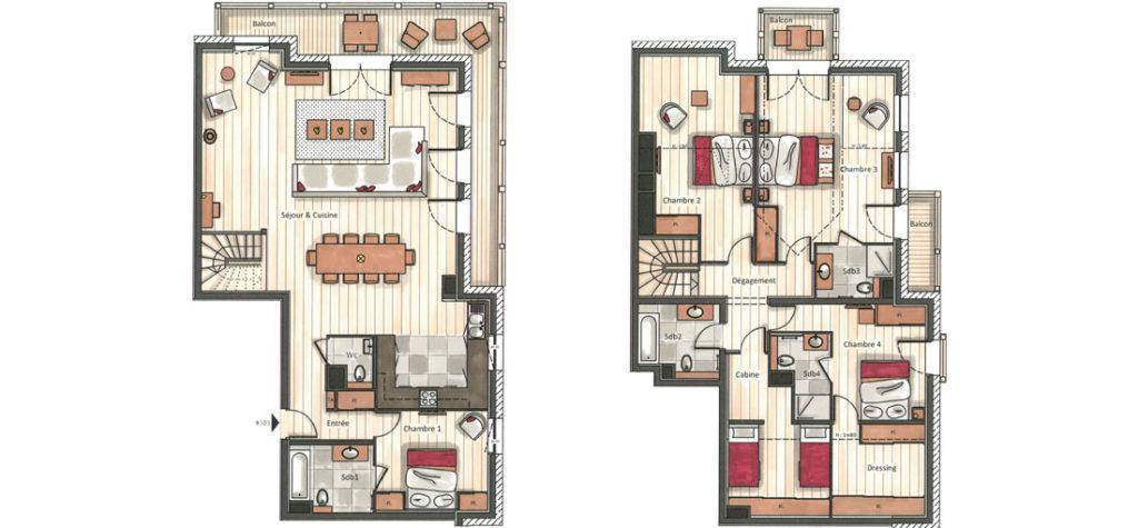 Fläche von ungefähr 185 m². 3te Etage. Orientierung : Nord, Ost. Niveau 0 : Wohnzimmer mit Schwedenofen. Schlafzimmer mit Doppelbett, , Haartrockner, Handtuchtrockner, WC. Küche mit Wasserkocher, Kaffeemaschine (Nespresso), Backofen, Toaster, Dunstabzugshaube, Waschmaschine, Geschirrspülmaschine, 2 Herdplatten, , Kühlschrank. separates WC. Balkon. Niveau 1 : Schlafzimmer mit Balkon, Doppelbett, , Haartrockner, Handtuchtrockner, WC. Schlafzimmer mit Ankleideraum, Doppelbett, , Haartrockner, Handtuchtrockner, WC. Schlafzimmer mit Doppelbett. Mansardenzimmer mit 2 Einzelbetten. Badezimmer mit Haartrockner, Handtuchtrockner, WC.
