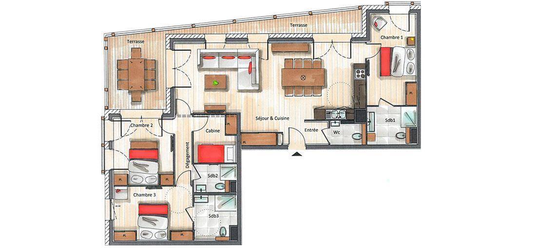 Fläche von ungefähr 121 m². 1te Etage. Orientierung : Nord, West. Blick berg. Wohnzimmer. 2 Schlafzimmer mit Doppelbett, , Haartrockner, Handtuchtrockner, WC. Schlafzimmer mit Doppelbett. offener Schlafbereich mit 2 Stockbetten. Küche mit Wasserkocher, Kaffeemaschine (Nespresso), Backofen, Toaster, Dunstabzugshaube, Waschmaschine, Geschirrspülmaschine, 2 Herdplatten, , Kühlschrank. Badezimmer mit Haartrockner, Handtuchtrockner, WC. separates WC. Terrasse. Die oberen Betten sind nicht für Kinder unter 6 Jahren geeignet.