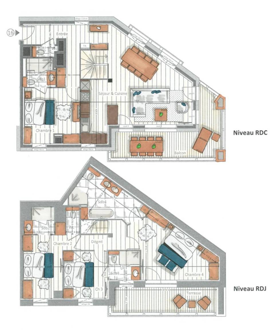 Fläche von ungefähr 131 m². Einige als Maisonette. 2te Etage. Orientierung : Ost, Süd. Niveau 0 : Wohnzimmer. Schlafzimmer mit Doppelbett, , Haartrockner, Handtuchtrockner, WC. Küche mit Wasserkocher, Kaffeemaschine (Nespresso), Backofen, Toaster, Dunstabzugshaube, Waschmaschine, Geschirrspülmaschine, 2 Herdplatten, , Kühlschrank. separates WC. Balkon. Niveau 1 : mit Doppelbett, (baignoire et douche), Haartrockner, Handtuchtrockner, WC. Schlafzimmer mit Doppelbett, , Haartrockner, Handtuchtrockner, WC. Schlafzimmer mit Doppelbett, , Haartrockner, Handtuchtrockner, WC (séparé). Terrasse.