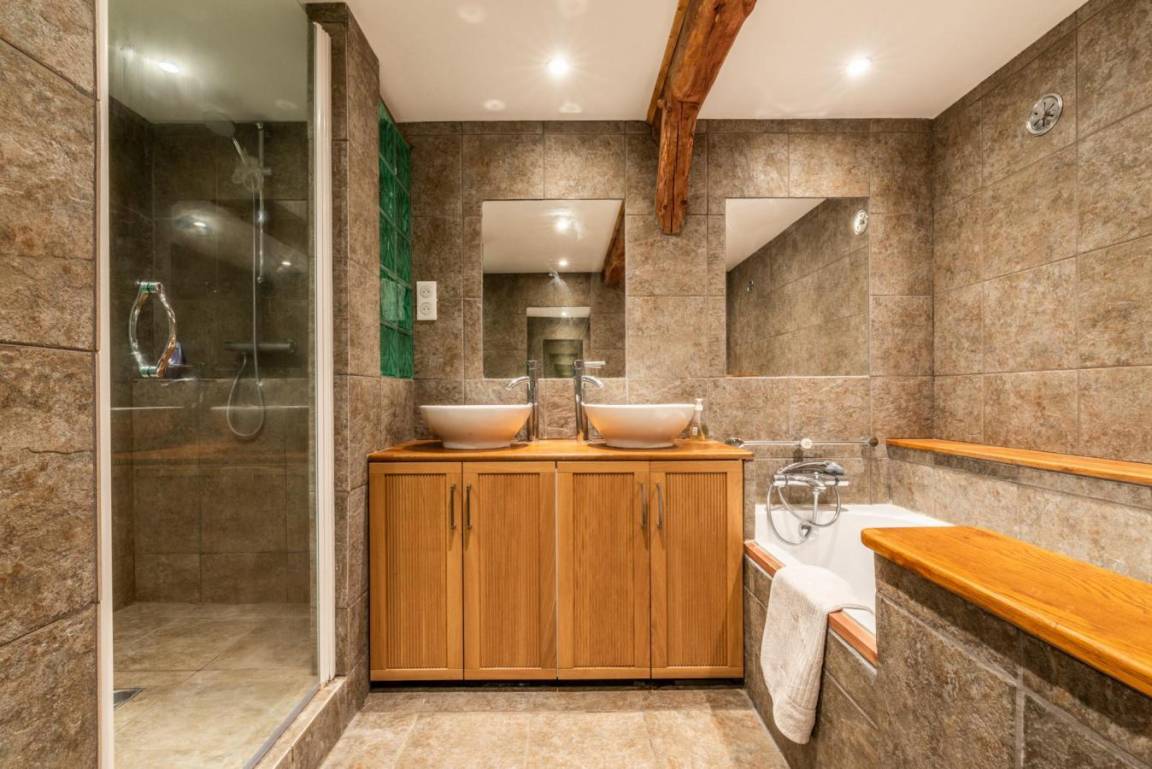 Fläche von ungefähr 232 m². Orientierung : Süd. Wohnzimmer. Schlafzimmer mit 2 Ausziehbetten. Schlafzimmer mit Doppelbett (180*200). Schlafzimmer mit Dusche, Doppelbett (160x200), 2 Einzelbetten (90x190), Waschraum, WC. 2 Schlafzimmer mit Badewanne, Doppelbett (140x190), Einzelbett, Badezimmer, WC. Schlafzimmer mit Doppelbett (160x200), Einzelbett (90x190). Küche mit Fonduegerät, Raclettegerät, Backofen, Geschirrspülmaschine, Mikrowellenherd, Kühl-Gefrier-Kombination. Badezimmer mit Badewanne, Dusche, WC. Waschküche mit Waschmaschine. Balkon.