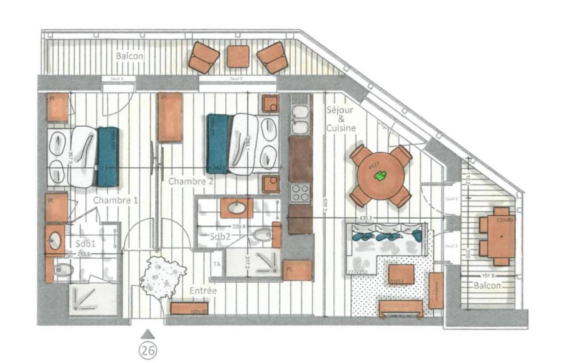 64 m² Ferienwohnung ∙ 2 Schlafzimmer ∙ 4 Gäste