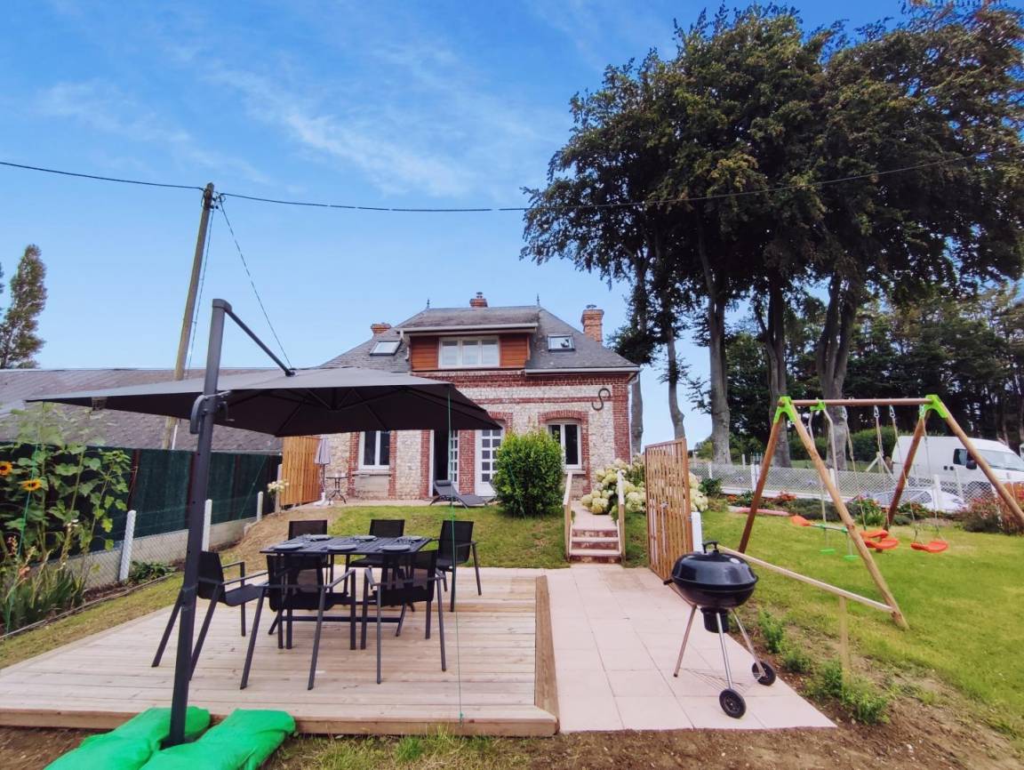 „Superbe séjour entre Etretat et Fecamp dans un gîte tout confort, très agréable, lumineux et bien équipé:-) Le propriétaire est très sympathique et arrangeant. Le jardin possède une balançoire pour les enfants et un baby-foot est installé dans le garage. Le gîte a été rénové récemment, il est très fonctionnel et confortable. Le propriétaire fournit le linge de toilette et de maison, ce qui allège bien la logistique des vacances ! Nous avons découvert le vélo rail des Loges, idéal pour visiter Etretat, les belles falaises et les célèbres arches d’Etretat ainsi que ses beaux jardins, la jolie ville de Fecamp et son musée de la Bénédictine et la ville du Havre, plus grande, avec son beau musée Mumo. Séjour en famille tout à fait réussi dans un très beau gîte avec plusieurs belles journées de soleil:-)“