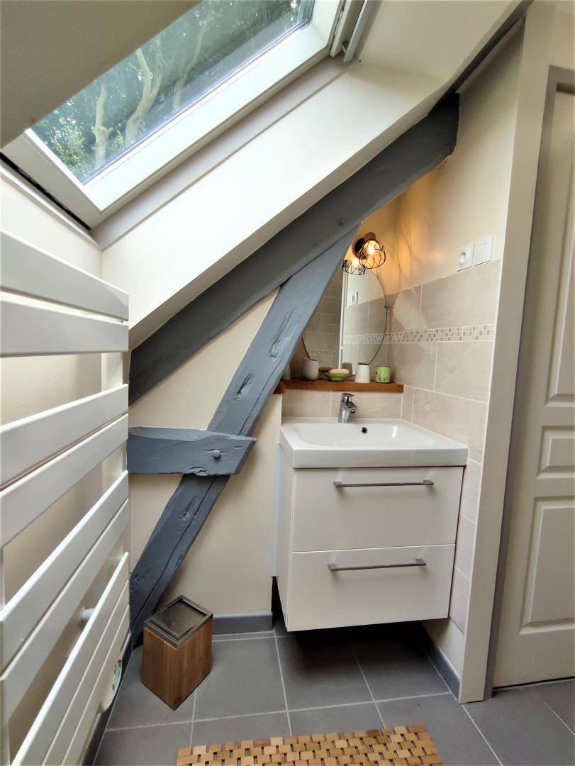 „Jean Pierre stond ons op te wachten en heeft een rondleiding in het huisje gegeven. Het is een oud gebouwtje, maar zeer compleet uitgerust met fijne slaapkamers en goede bedden. De badkamer is erg klein en in bad douchen is voor lange mensen een uitdaging. Het is landelijk gelegen, maar je bent zo bij de kust of een stad als Fécamp. We mochten sla en aardbeien uit de tuin eten. We hebben erg genoten van ons verblijf!“
