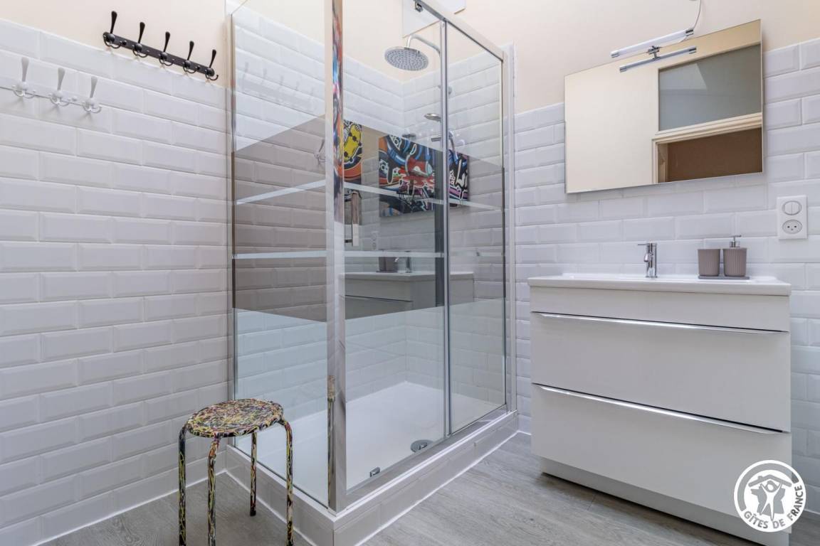 „Gîte propre. Bien situé en plein centre ville. Gîte calme moderne et fonctionnel. Idéal pour une famille. Grande douche. Lit très confortable Garage un peu étroit. Ne pas avoir une grosse voiture. Rue étroite. Il est bien équipé. Les consignes sont claires. Je recommande ce Gîte.“