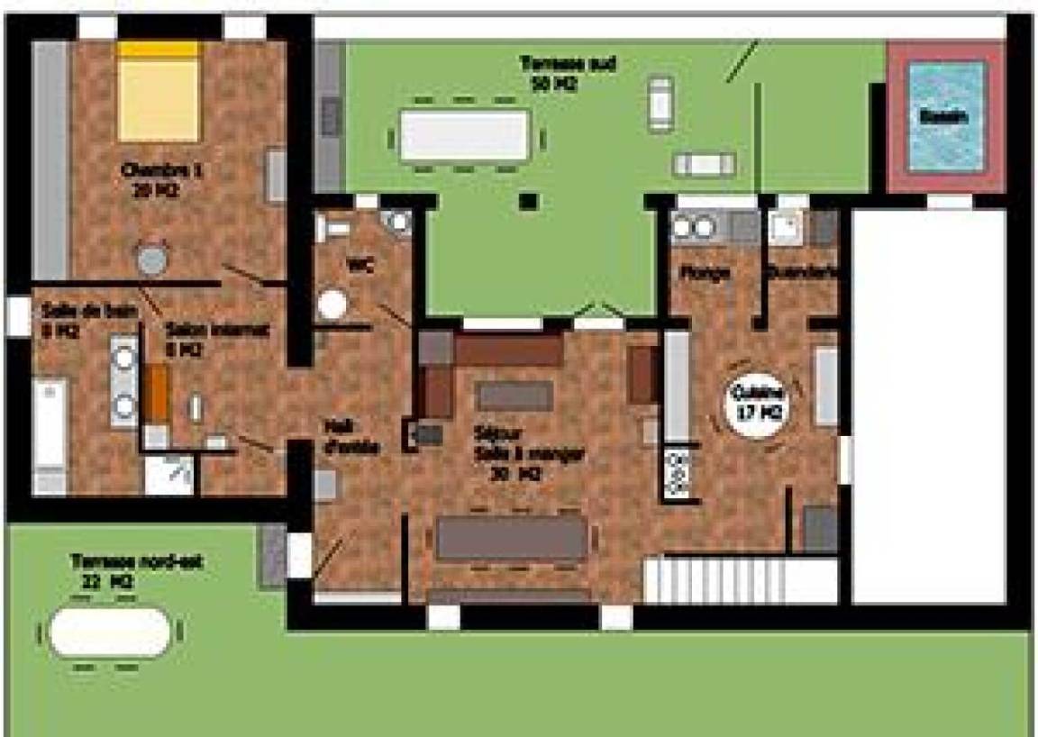 Das Ferienhaus umfasst: übernachten mit Blick auf die Terrasse, Küche mit Essbereich und ein Wäscheservice, Schlafzimmer mit Bett 160 cm, Badezimmer und wc angrenzend. Obergeschoss erreichbar durch eine Galerie mit Blick auf das Wohnzimmer, 3 Schlafzimmer mit 2 Betten, 140 und 2 Betten 90, Bad wc. Heizung CAP von Boden und Woodstove (Granulate auf Anfrage 5 € / Beutel). Reinigung, Bettwäsche und Handtücher auf Anfrage. Möglichkeit für 2 Personen über €150, konsultieren Sie uns. In der Hütte Parken. www.gite-Montagne-Noire.com.