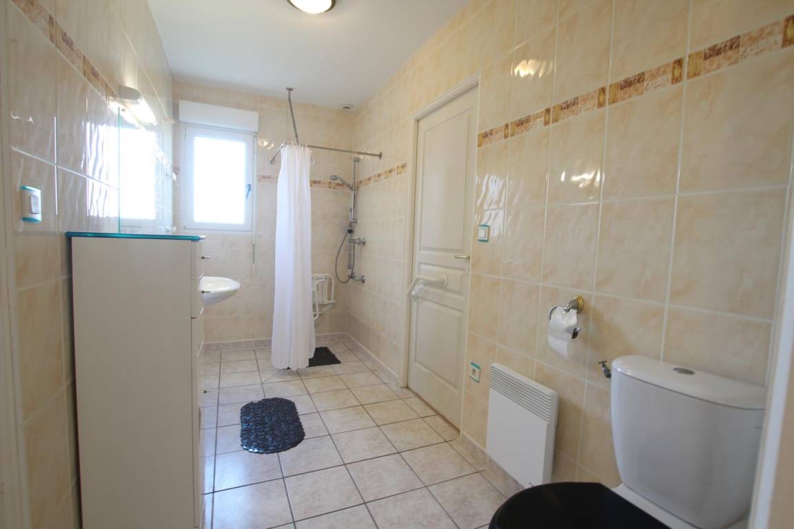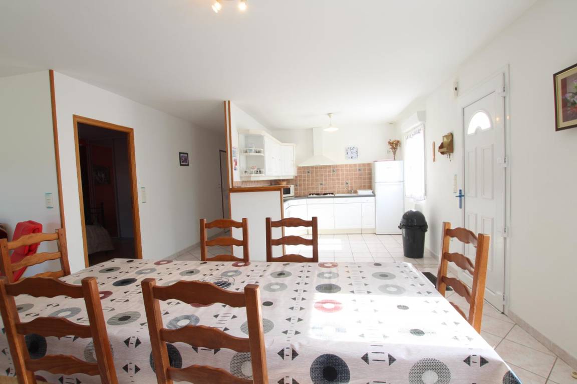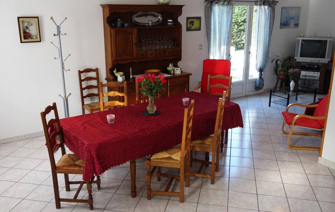 Freistehendes Haus, komplett ebenerdig und für Menschen mit Behinderungen (motorisch, visuell, geistig, hörend) zugänglich. Wohnzimmer. Kochnische. Schlafzimmer 1 (2 Einzelbetten). Schlafzimmer 2 (1 Doppelbett + 1 Einzelbett). Schlafzimmer 3 (1 Doppelbett). Babybett auf Anfrage. 2 Duschräume. 2 Toiletten. WLAN. Fernseher. DVD-Player. Hi-Fi-Anlage. Waschmaschine. Geschirrspüler. Wäschetrockner. Bettwäsche und Haushaltswäsche mietbar. Reinigungsservice gegen Aufpreis. Heizung inklusive. Privates, eingezäuntes Grundstück. Terrasse. Gartenmöbel. Liegestühle. Grill. Bouleplatz. Garage. Außendusche. Nur ein Haustier pro Aufenthalt gegen Gebühr erlaubt. Gîte mit dem Label "Famille Plus".