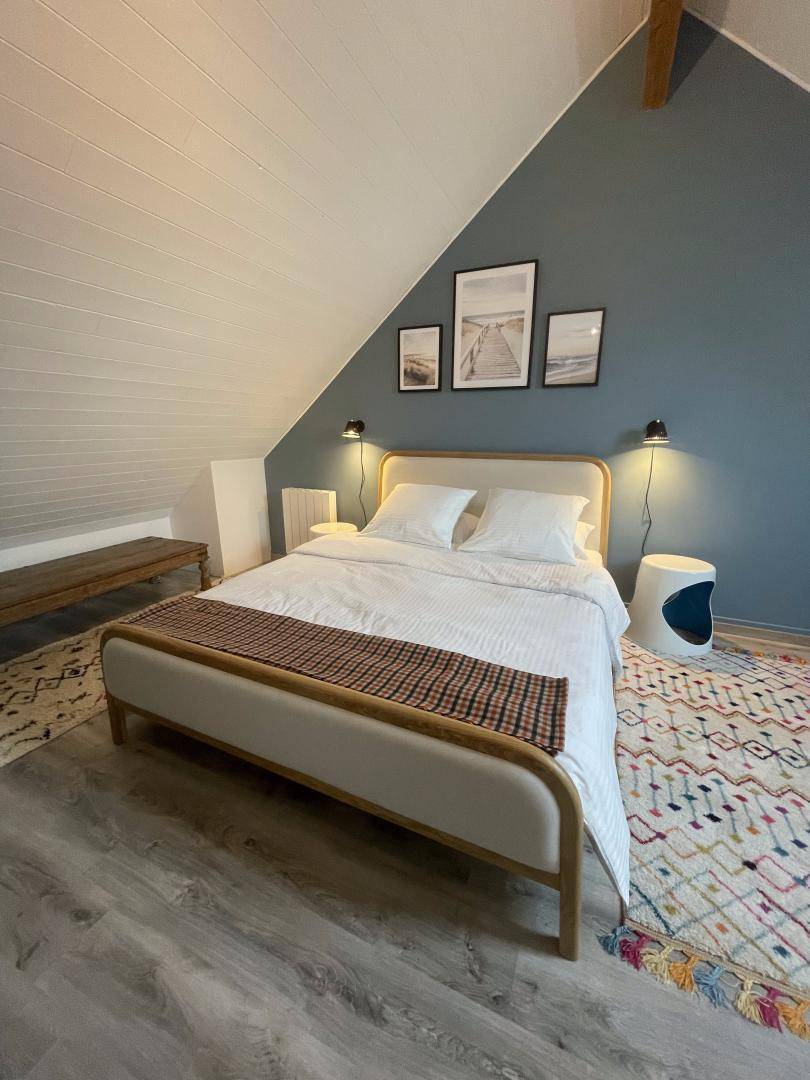 Etwas abseits von Cap de Carteret gelegen, bietet dieses friedliche Dörfchen eine ruhige Umgebung für Ihren Aufenthalt. Pierre heißt Sie herzlich willkommen in diesem wunderbar gemütlichen Fachwerkhaus! Er und Marie haben das warme und einladende Interieur geschmackvoll eingerichtet. Das helle Wohnzimmer mit dem Pelletofen als Mittelpunkt öffnet sich zu einer nach Süden ausgerichteten Terrasse. Dank der hervorragenden Isolierung ist das Haus zu jeder Jahreszeit angenehm zu bewohnen, und an diesem Küstenabschnitt der Inseln gibt es zahlreiche Freizeitmöglichkeiten. Wanderfreunde werden die Senkwege durch die von Hecken gesäumten Felder und die Dünenpfade im Naturschutzgebiet Hatainville lieben. Ein kurzer Fitnessparcours befindet sich direkt neben dem Ferienhaus.