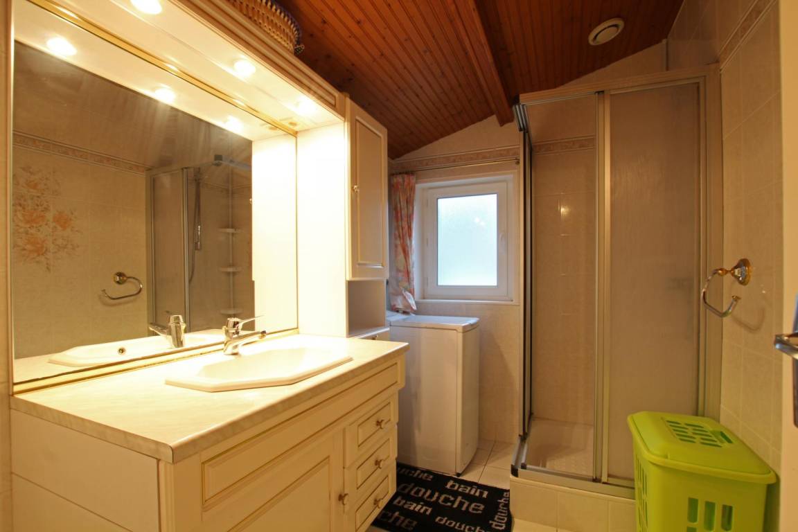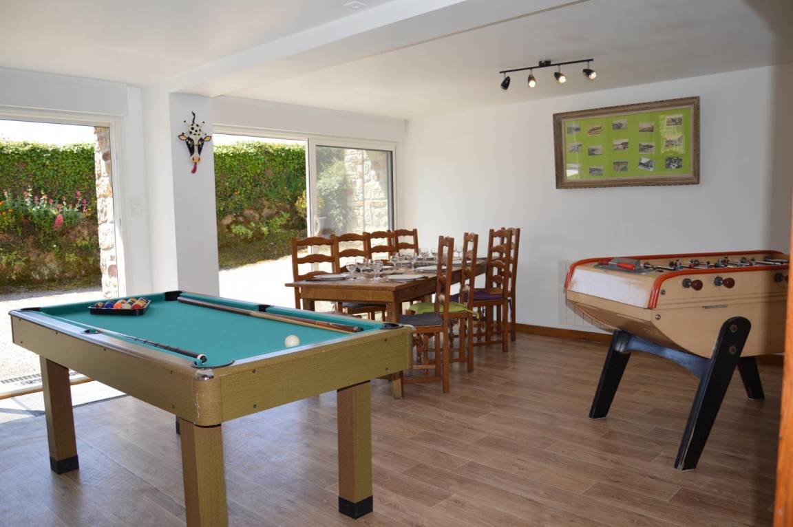 Freistehendes Haus. Wohnzimmer mit Kamin. Küche (Gasherd, Mikrowelle, Geschirrspüler). Esszimmer mit Spielen (Billard, Tischfußball). Duschbad (Waschmaschine). WC. Im ersten Stock: Schlafzimmer auf der Galerie (zwei Betten à 140 x 190 cm). Schlafzimmer 2 (Bett à 140 x 190 cm). Duschbad mit WC. Schlafzimmer 3 (ein Bett à 140 x 190 cm und ein Bett à 90 x 190 cm). Babyausstattung. Fernseher. Hi-Fi-Anlage. WLAN. Wäschetrockner. Bettwäsche und Handtücher können gemietet werden. Reinigungsservice gegen Aufpreis. Elektrische Heizung gegen Aufpreis. Privater, umzäunter Garten. Gartenmöbel. Schaukel. Rutsche. Bouleplatz. Grill. Parkplatz. Brennholz gegen Aufpreis erhältlich.