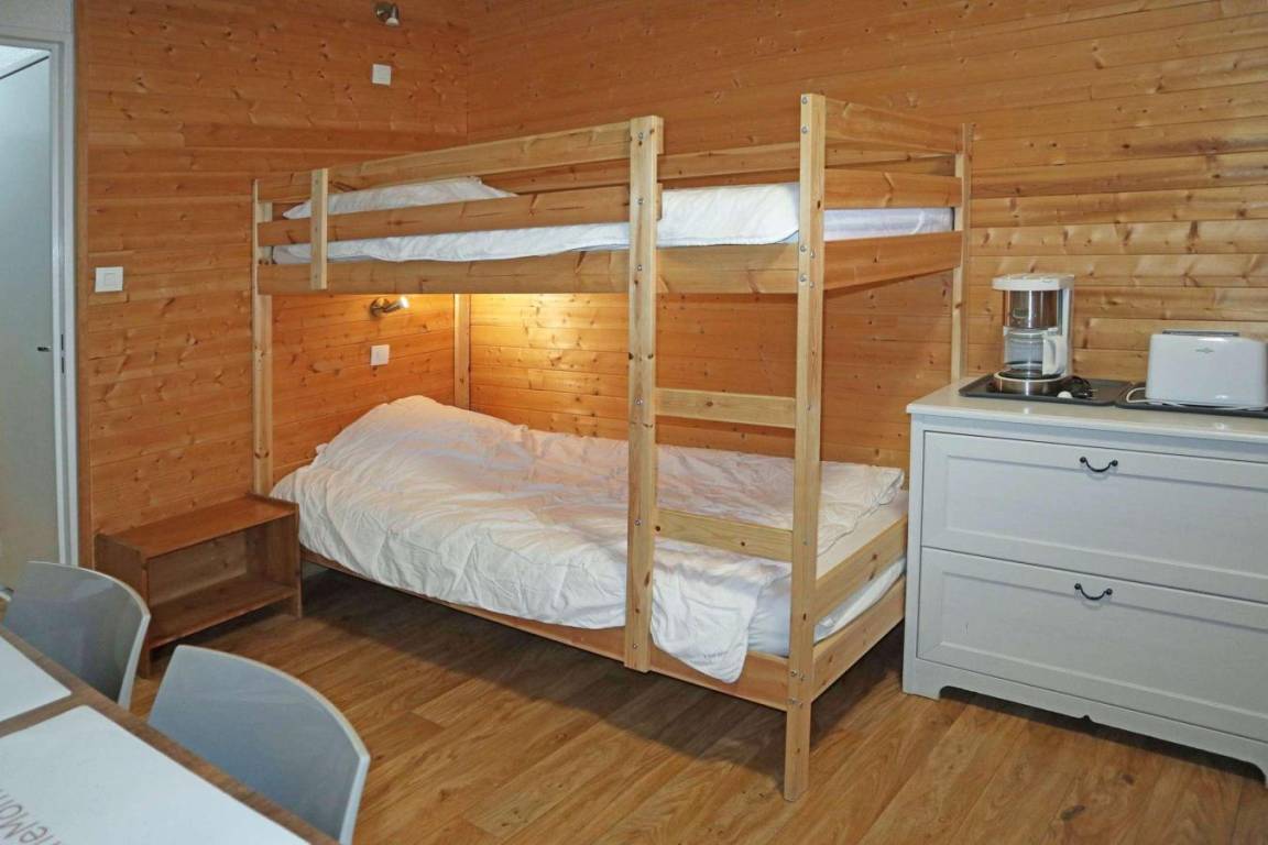 Die Schlüsselübergabe erfolgt direkt im Erdgeschoss der Residenz. Fläche von ungefähr 26 m². 1te Etage. Orientierung : West. Wohnzimmer mit einfache Klappschlafcouch. offener Schlafbereich mit 2 Stockbetten (90*200). Kochnische mit Dunstabzugshaube, Mikrowellenherd, Kühlschrank. WC. Waschräume mit Dusche. Die oberen Betten sind nicht für Kinder unter 6 Jahren geeignet.