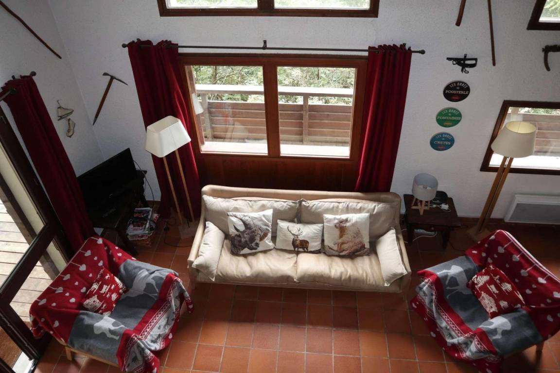 Fläche von ungefähr 100 m². Orientierung : West. Blick tal. Niveau 0 : Wohnzimmer mit Kamin, Klappschlafcouch. Schlafzimmer mit Doppelbett. Kochnische mit Kaffeemaschine, Gefrierschrank, Backofen, Geschirrspülmaschine, Mikrowellenherd, 4 elektronische Herdplatten, Kühlschrank. Waschräume. WC. Terrasse. Niveau -1 : Keller mit Waschmaschine, Wäschetrockner. Niveau 1 : offener Schlafbereich mit einfache Klappschlafcouch (2 places). 2 Schlafzimmer mit Doppelbett. Alkoven mit Einzelbett. Badezimmer mit WC.