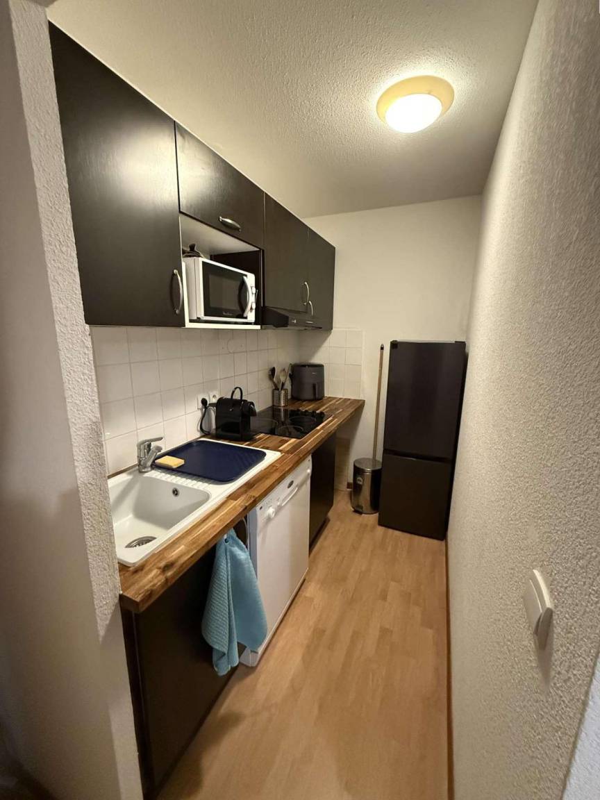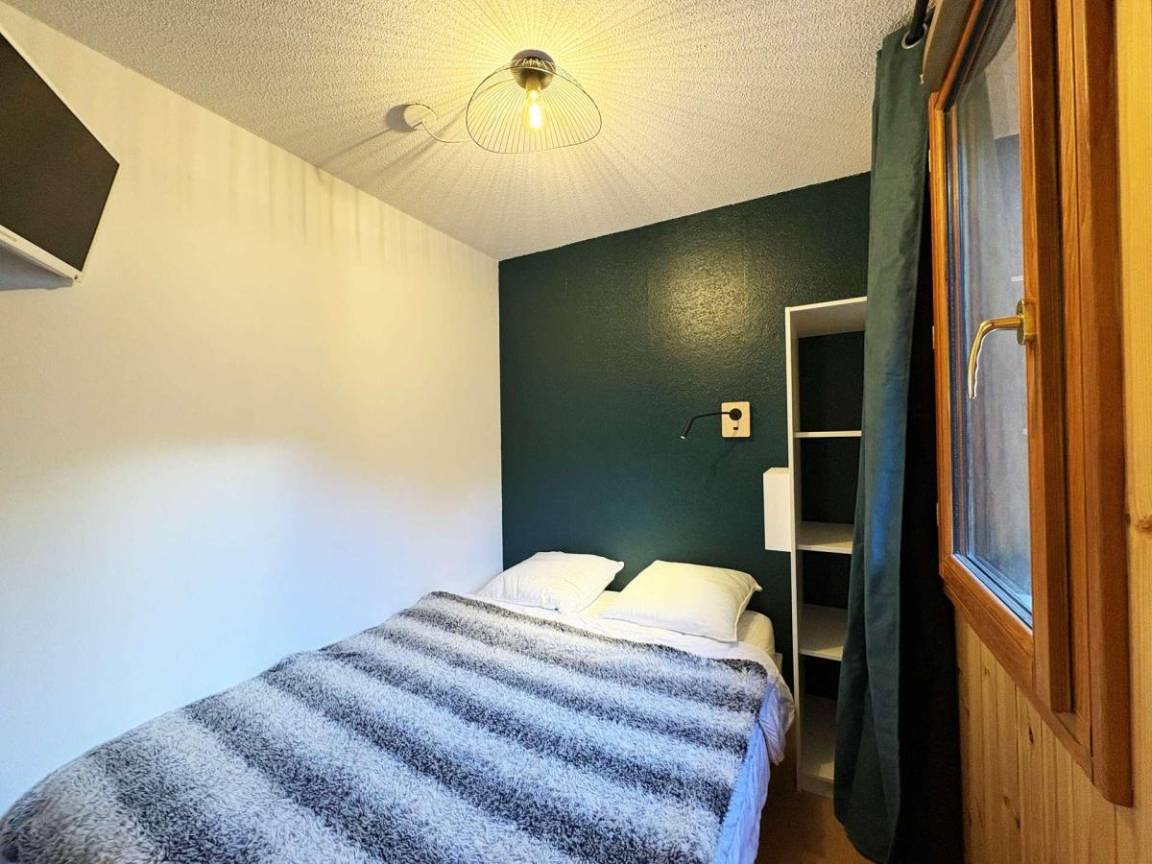 Fläche von ungefähr 33 m². 2te Etage. Orientierung : Süd-Ost. Blick tal. Wohnzimmer mit einfache Klappschlafcouch (2 places). Schlafzimmer mit Doppelbett (160). offener Schlafbereich mit 2 Stockbetten. Kochnische mit Raclettegerät, Geschirrspülmaschine, Mikrowellenherd, , 2 Herdplatten, Kühlschrank. WC. Badezimmer mit Haartrockner. Balkon. Die oberen Betten sind nicht für Kinder unter 6 Jahren geeignet.