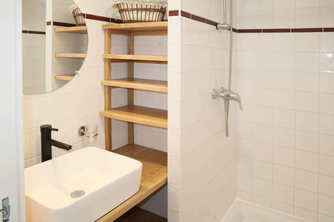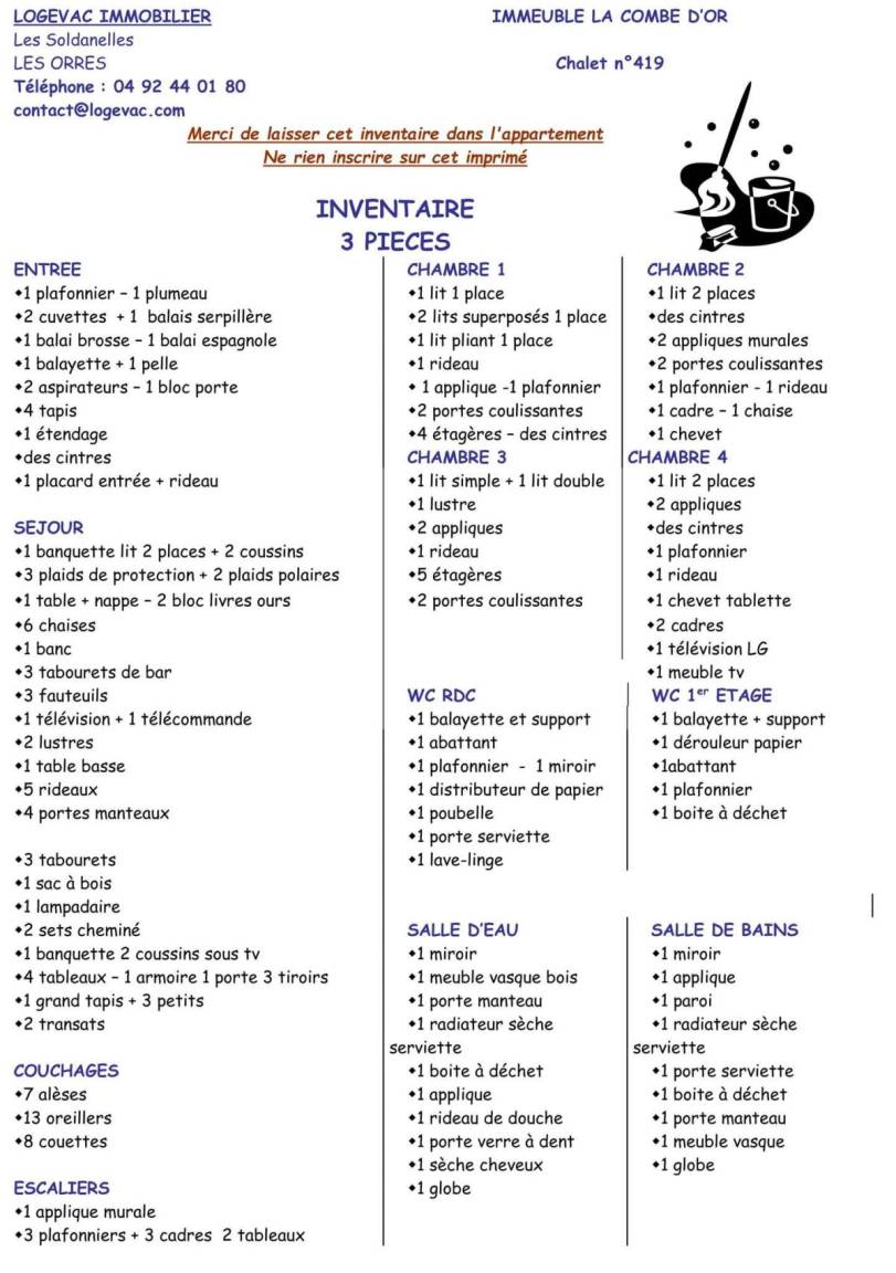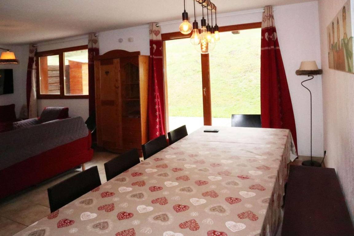 Fläche von ungefähr 90 m². Einige als Maisonette. Orientierung : Süd-Ost. Niveau 0 : Wohnzimmer mit Klappschlafcouch, Kamin, Safe. Küche mit Wasserkocher, Kaffeemaschine, Backofen, Toaster, Geschirrspülmaschine, Mikrowellenherd, 4 Induktionsherdplatten, Kühl-Gefrier-Kombination. separates WC mit Waschbecken. Terrasse mit 2 Liegestühle. Niveau 1 : 2 Schlafzimmer mit Doppelbett. Schlafzimmer mit 2 Einzelbetten. Schlafzimmer mit 2 Stockbetten. Badezimmer mit Badewanne, Handtuchtrockner. Waschräume mit Dusche, Handtuchtrockner. separates WC. Die oberen Betten sind nicht für Kinder unter 6 Jahren geeignet.