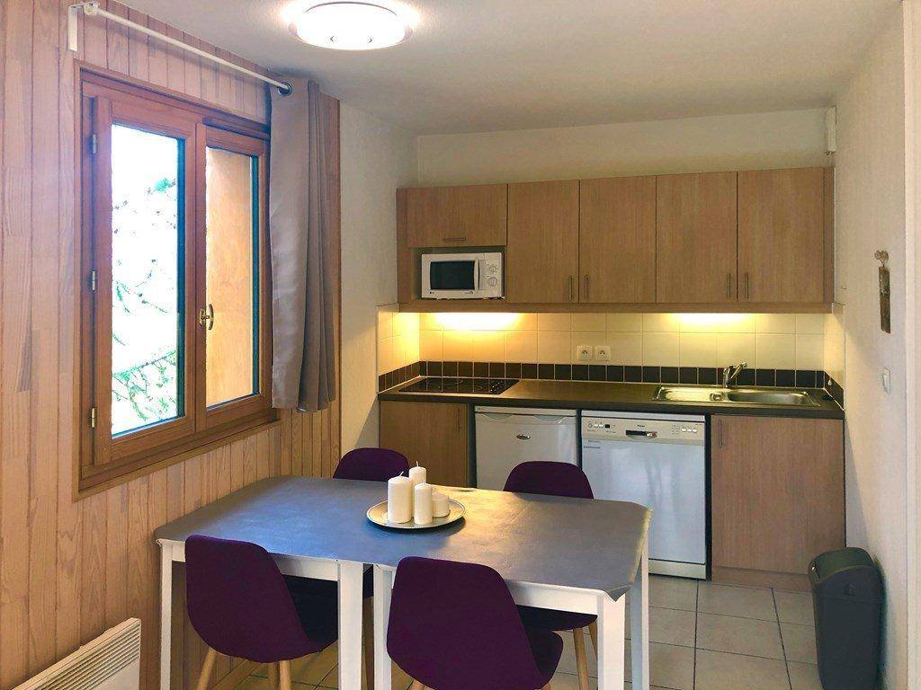 Die Residenz Balcon des Airelles liegt 80 m von den Skiliften entfernt. Die ersten Geschäfte sind 50 m vom Gebäude entfernt. Die Apartments sind hell und gut ausgestattet. Die Residenz verfügt über einen Aufzug. Fläche von ungefähr 34 m². 1te Etage. Orientierung : Süd-Ost. Blick tal. Diele. Wohnzimmer mit einfache Klappschlafcouch (160). Schlafzimmer mit Doppelbett (160). Kochnische mit Geschirrspülmaschine, Mikrowellenherd, Herdplatten, Kühlschrank. Badezimmer mit Badewanne, Waschbecken. separates WC. Balkon.