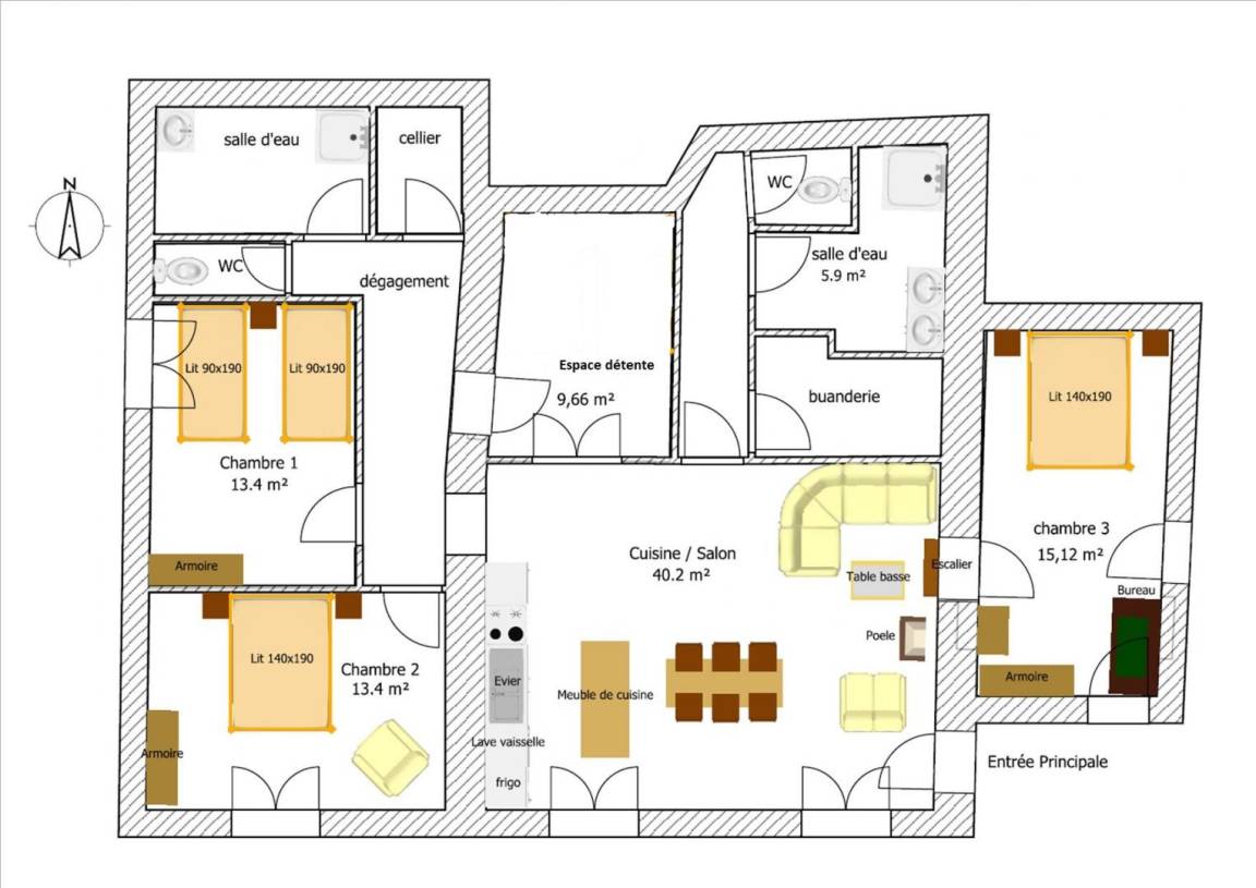 120 m² Gîte ∙ 3 Schlafzimmer ∙ 6 Gäste