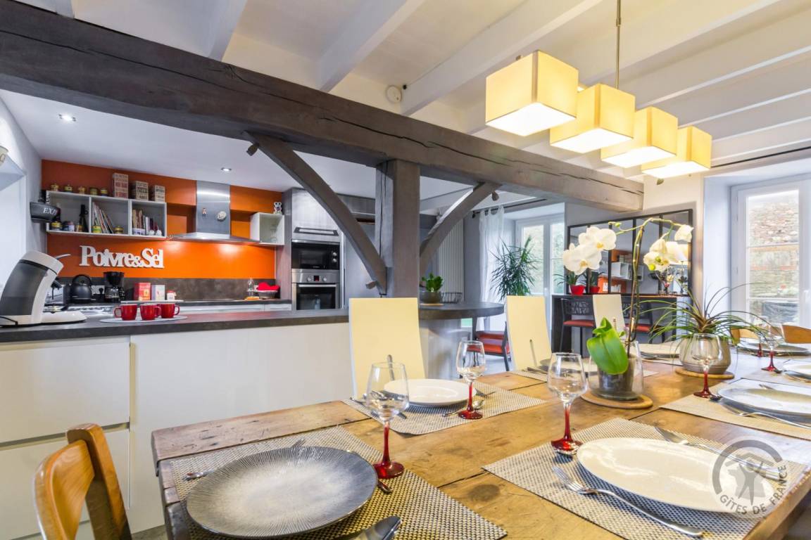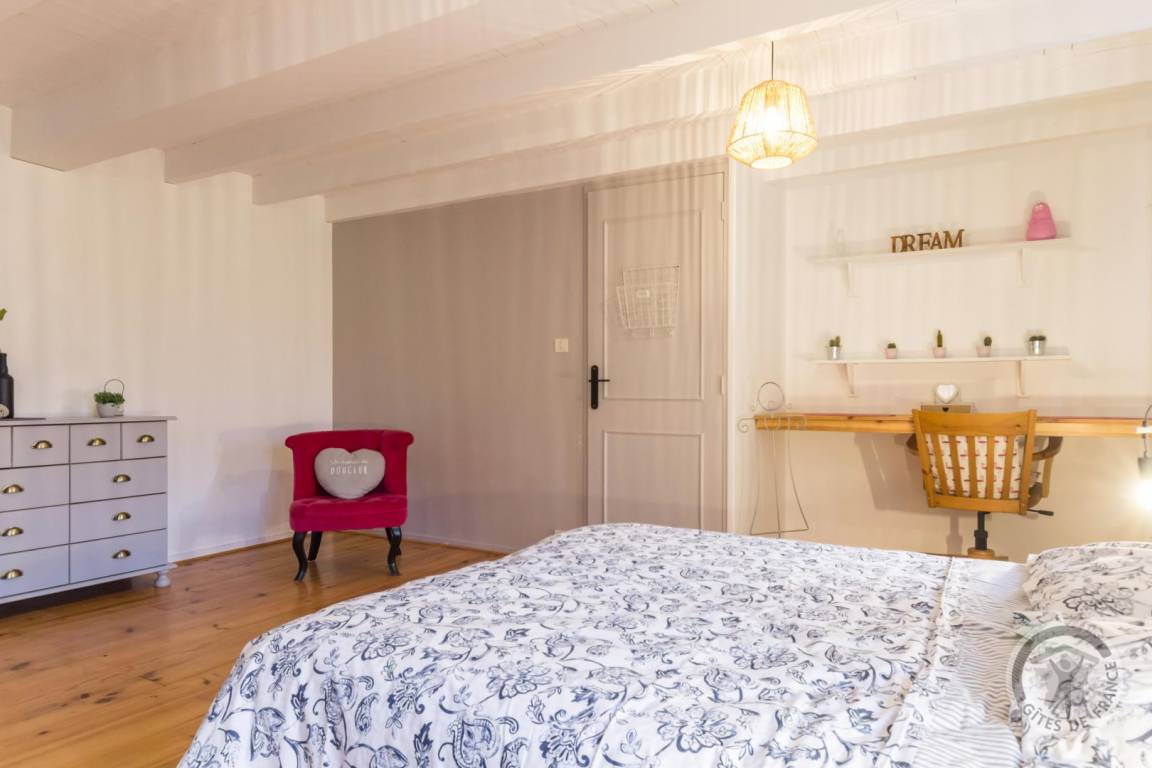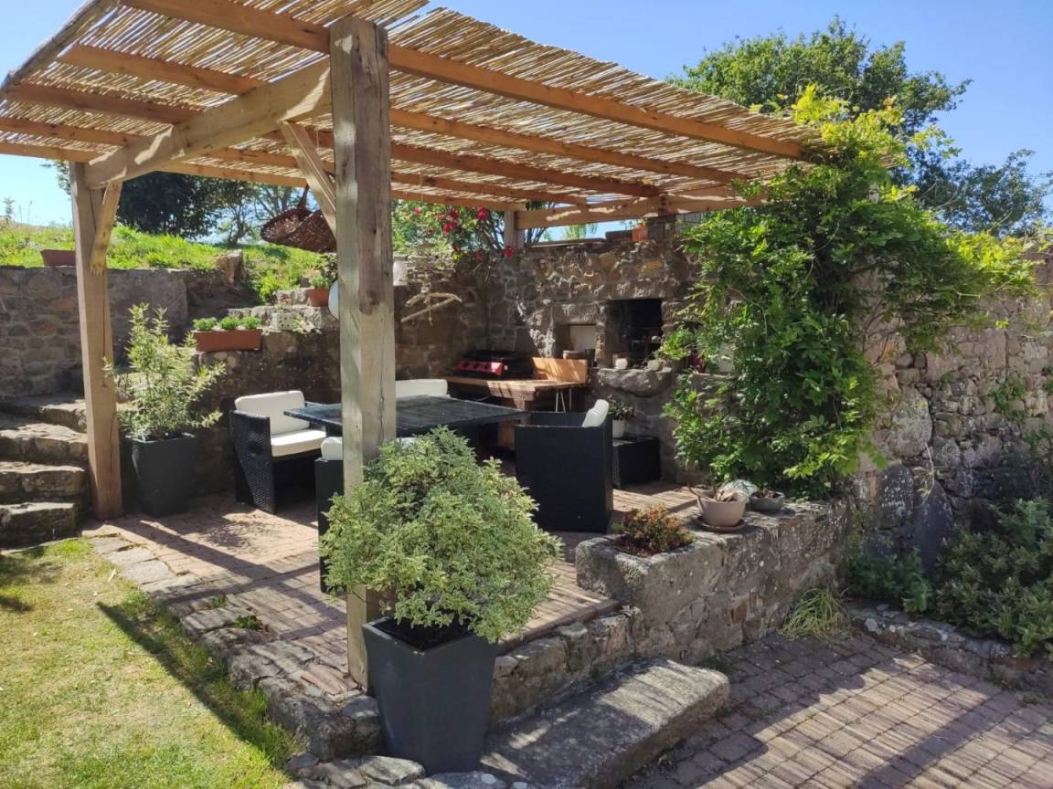Freistehendes Haus. Wohnzimmer mit Kamin (TV, Stereoanlage, Internetanschluss). Küche (Backofen, Kühlschrank mit Gefrierfach, Mikrowelle, Geschirrspüler) mit Zugang zum Esszimmer. Waschküche (Waschmaschine). Duschbad mit WC. Obergeschoss: Schlafzimmer 1 (zwei ausziehbare Einzelbetten 90x190 cm), Schlafzimmer 2 (ein Doppelbett 140x190 cm). Badezimmer mit WC. Zweites Obergeschoss: Schlafzimmer 3 mit separater Treppe (Doppelbett 140x190 cm) und Schlafzimmer 4 mit separater Treppe (Queensize-Bett 160x200 cm). Babyausstattung auf Anfrage. Ölzentralheizung (gegen Aufpreis). Bettwäsche und Handtücher können gemietet werden. Reinigungsservice (gegen Aufpreis). Privater, nicht umzäunter Garten. Terrasse mit Pergola. Gartenmöbel. Grill. Plancha-Grill. Sonnenliegen. Obstgarten und Grundstück werden mit den Eigentümern geteilt. Bouleplatz. Parkplatz. Garage zur Aufbewahrung von Gartengeräten (kein Stellplatz). Partys und Feiern sind nicht gestattet.