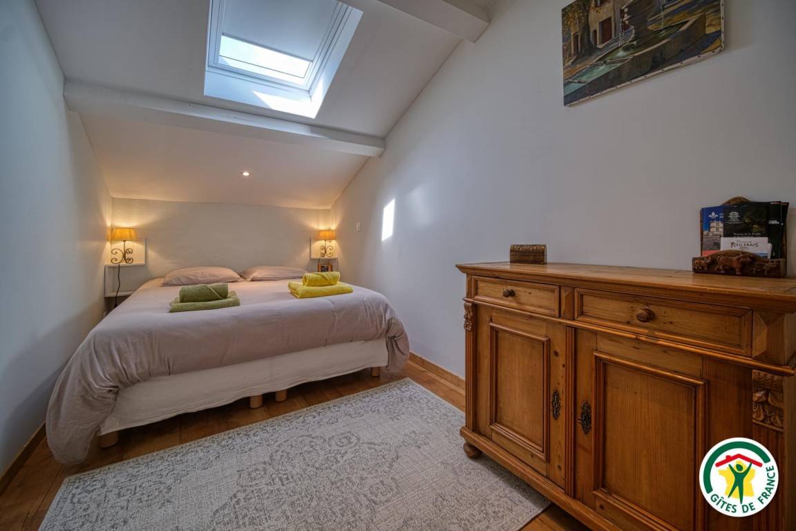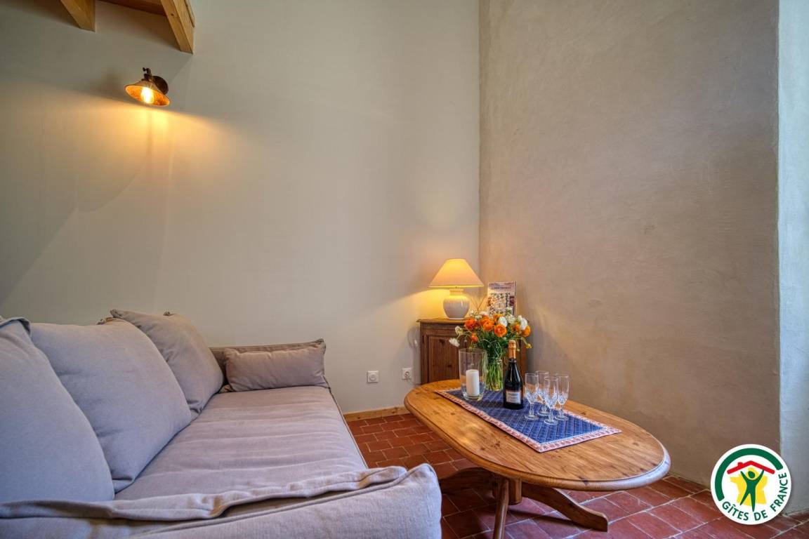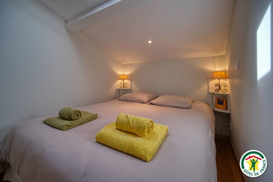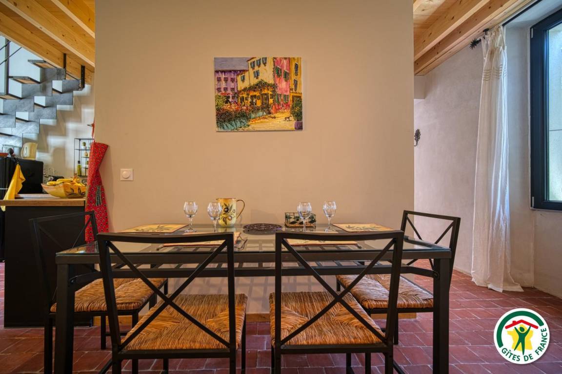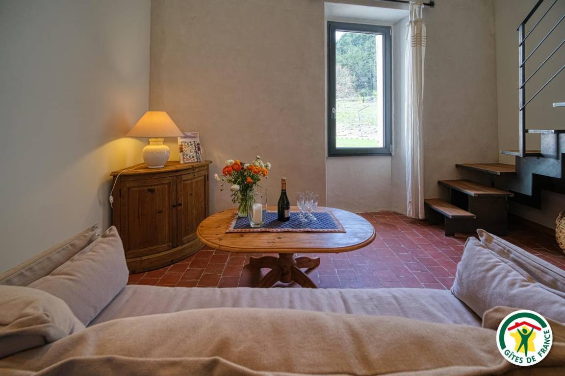 Der Zugang zur Gîte erfolgt über eine Außentreppe, die mit einer anderen benachbarten Gîte geteilt wird. Im Inneren entdecken Sie einen hellen Wohnraum, ausgestattet mit einer modernen, perfekt ausgestatteten Küche, sowie einen Wohnbereich mit einem Schlafsofa.