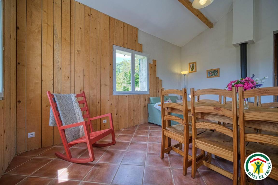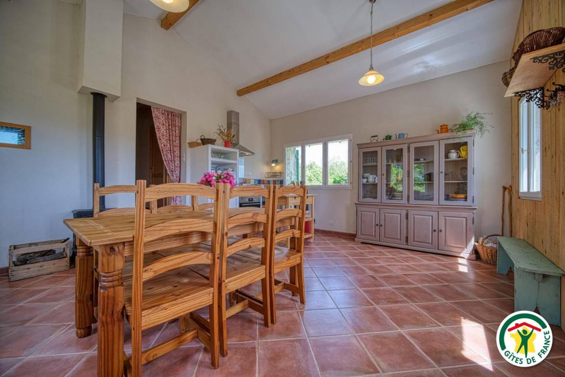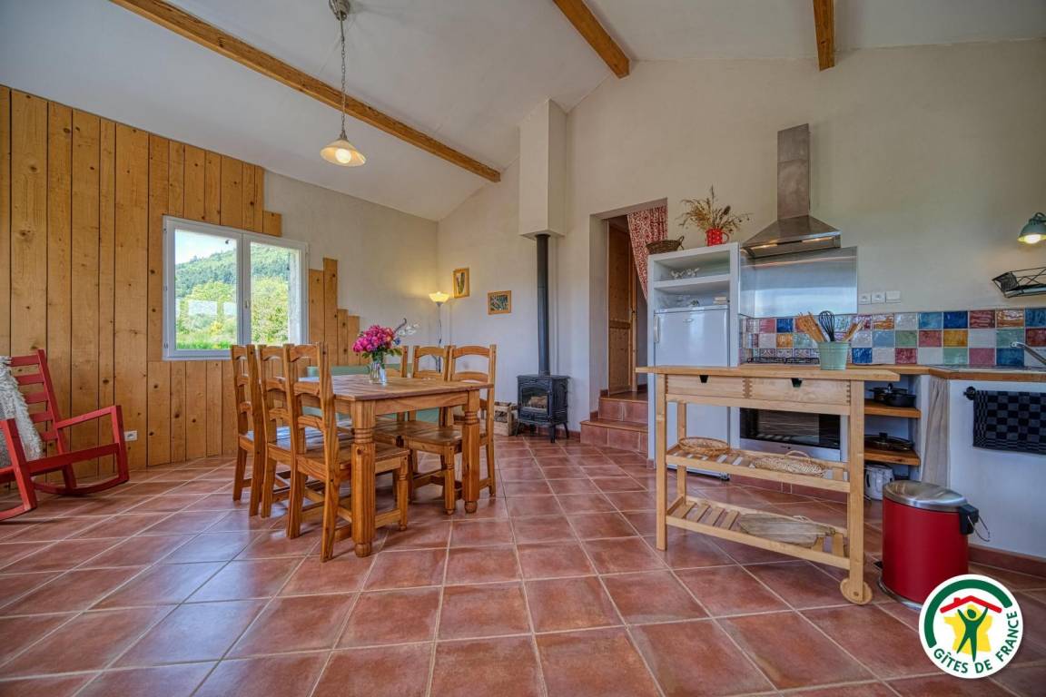 Sie erreichen die Gîte über eine große Südterrasse, die über drei Stufen erreichbar ist. Beim Betreten des Eingangs gelangt man in eine zum Wohnzimmer offene Küche, ohne Fernseher oder WLAN (4G-Abdeckung). Die Besitzer stellen Ihnen eine große Auswahl an Brettspielen zur Verfügung.