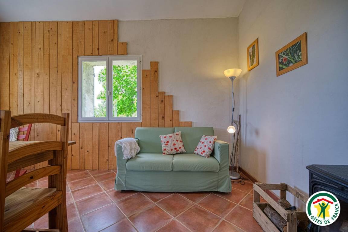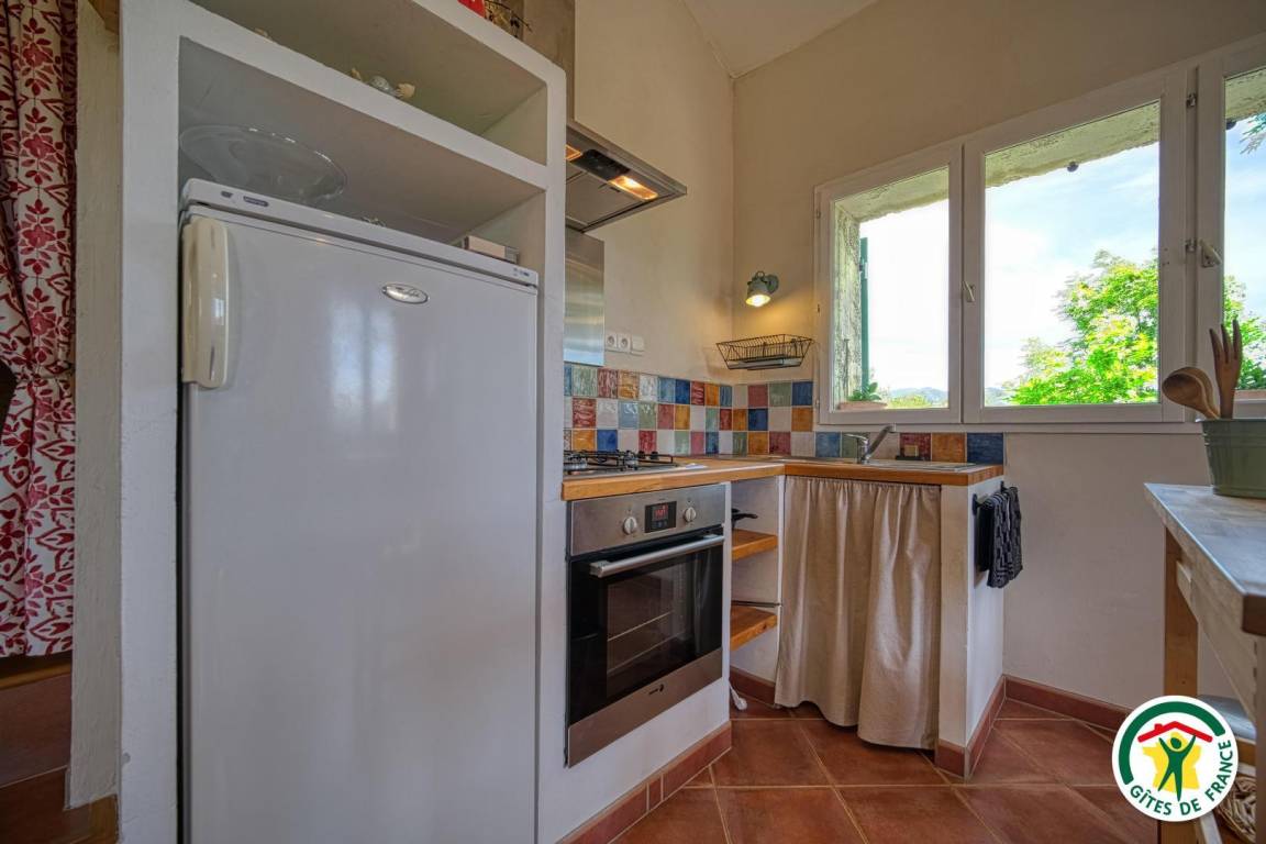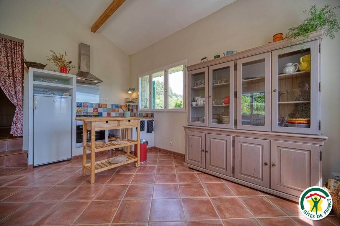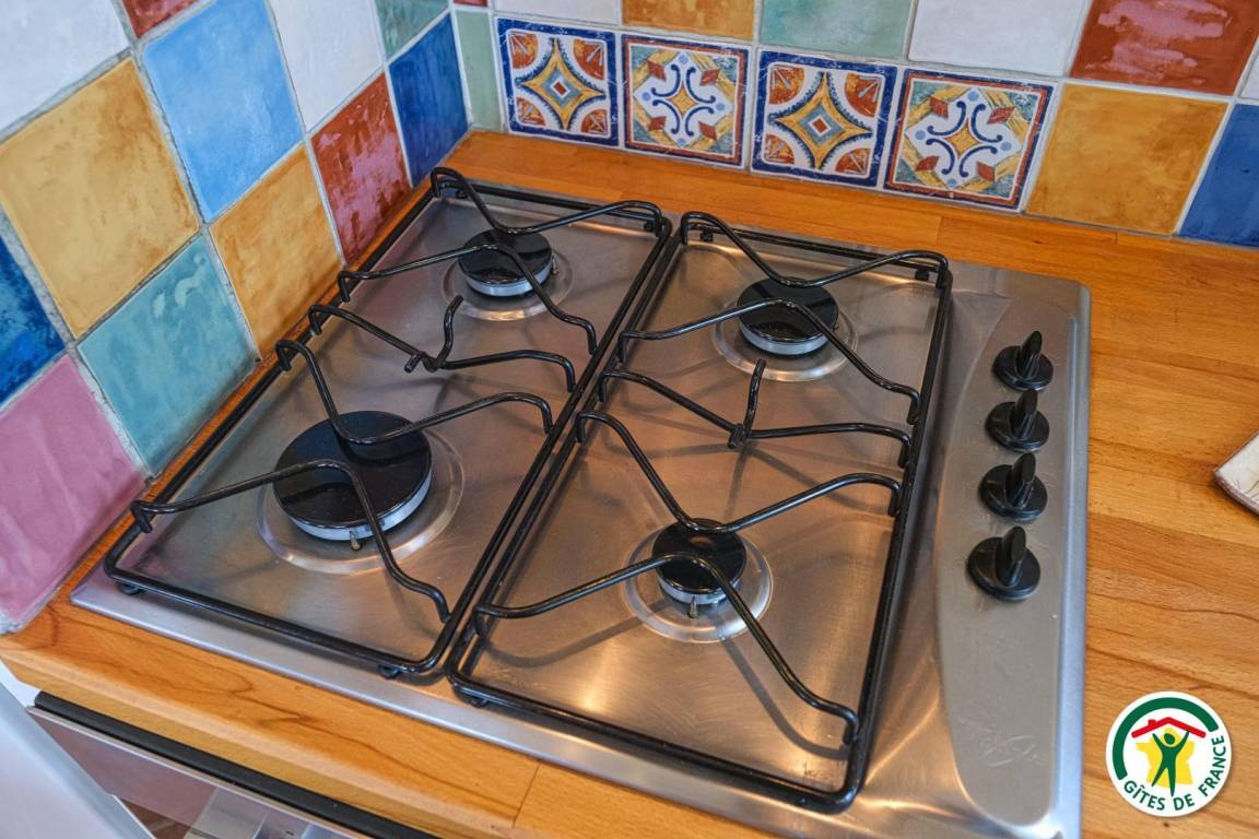 Sie erreichen die Gîte über eine große Südterrasse, die über drei Stufen erreichbar ist. Beim Betreten des Eingangs gelangt man in eine zum Wohnzimmer offene Küche, ohne Fernseher oder WLAN (4G-Abdeckung). Die Besitzer stellen Ihnen eine große Auswahl an Brettspielen zur Verfügung.