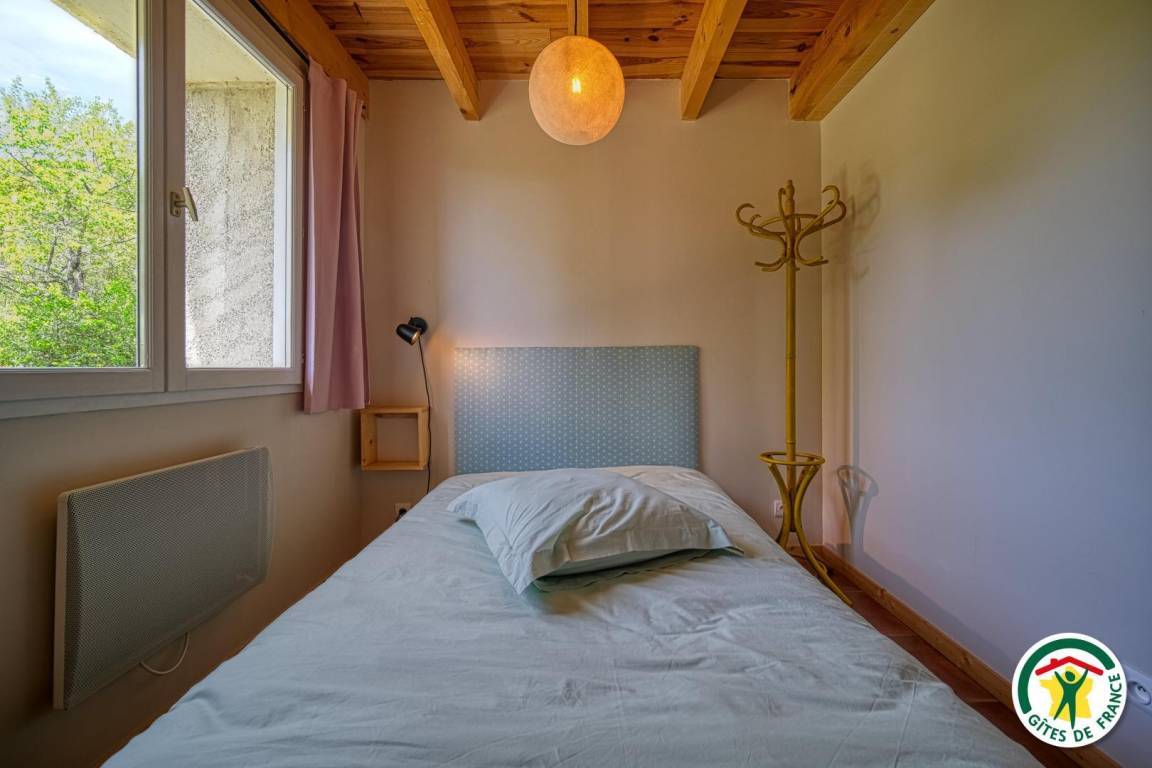 Nach drei weiteren Stufen führt Sie ein Flur zu drei Schlafzimmern. Das erste Schlafzimmer ist für eine Person ausgelegt und mit einem 120 x 190 cm großen Bett ausgestattet, während das zweite Schlafzimmer zwei Personen in einem 140 x 190 cm großen Bett unterbringen kann. Schließlich ist das letzte Schlafzimmer mit einem 120*190-Bett ausgestattet. Es ist zu beachten, dass die Zimmer zwar komfortabel, aber von bescheidener Größe sind (jeweils ca. 6,5 m²).