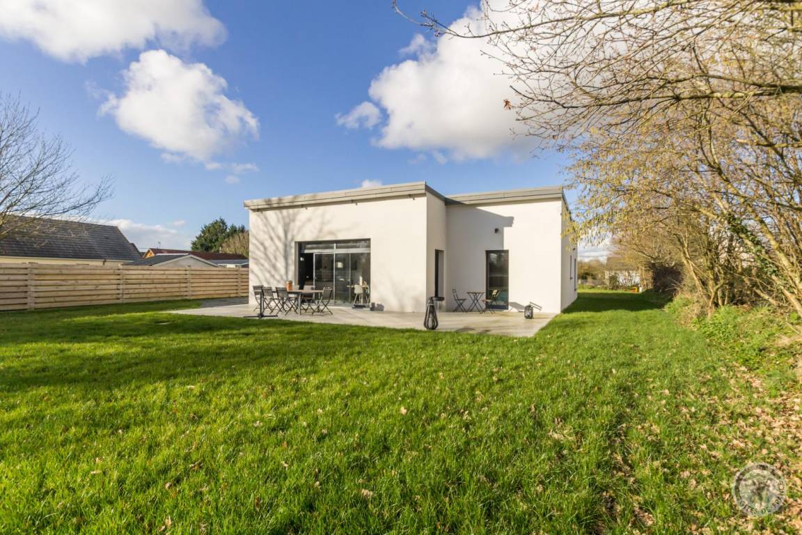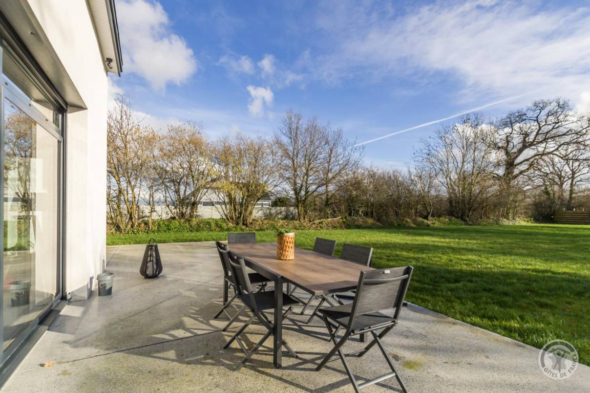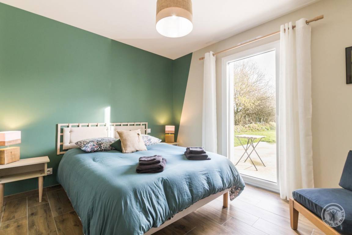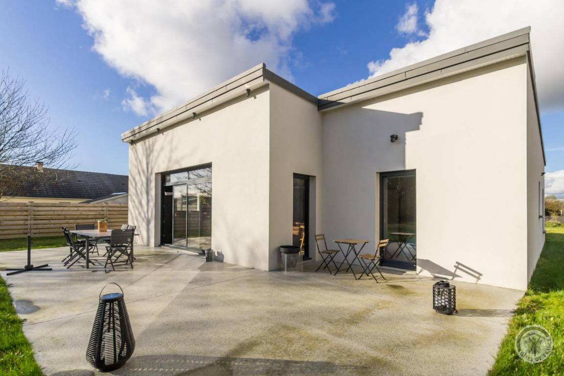 Freistehendes, ebenerdiges Haus. Eingangsbereich mit WC. Großes Wohnzimmer (4G-Internet, Internet-TV). Offene Küche (Backofen, Geschirrspüler, großer Kühlschrank mit Gefrierfach, Mikrowelle, Kapsel- und Filterkaffeemaschine). Waschküche (Waschmaschine, Wäschetrockner) und Abstellraum. Schlafzimmer 1 (1 Doppelbett 140x190 cm) mit direktem Zugang zur Terrasse. Duschbad (Doppelwaschbecken, ebenerdige Dusche) mit WC. Schlafzimmer 2 (1 Queensize-Bett 160x200 cm) und Schlafzimmer 3 (2 Einzelbetten 90x190 cm). Babyausstattung auf Anfrage. Bettwäsche und Handtücher werden gestellt. Betten sind bei Ankunft bezogen. Reinigungsservice gegen Aufpreis. Beheizung über eine reversible Luft-Wasser-Wärmepumpe im Wohnzimmer und elektrische Heizkörper in den Schlafzimmern und Badezimmern. Nebenkosten inklusive. Privater, nicht umzäunter Garten. Große Terrasse. Gartenmöbel. Sonnenliegen. Grill. Parkplatz.