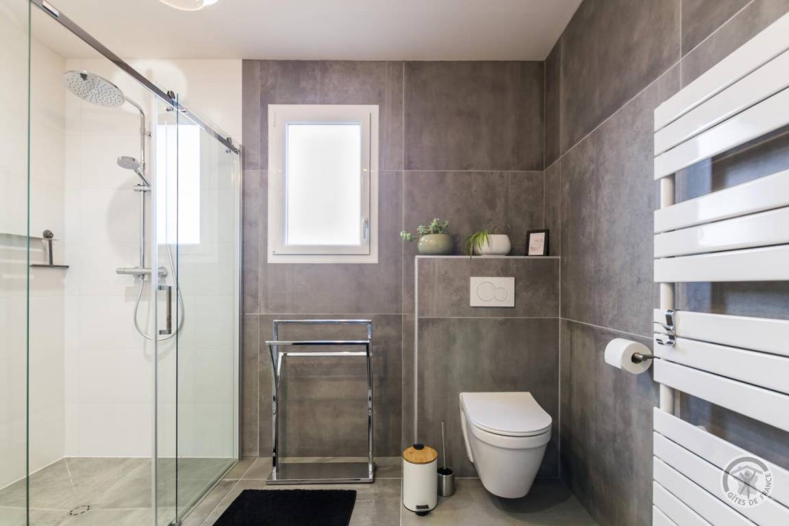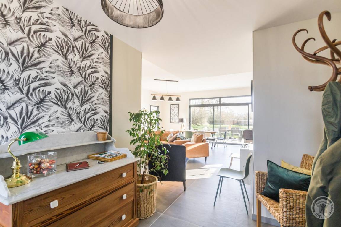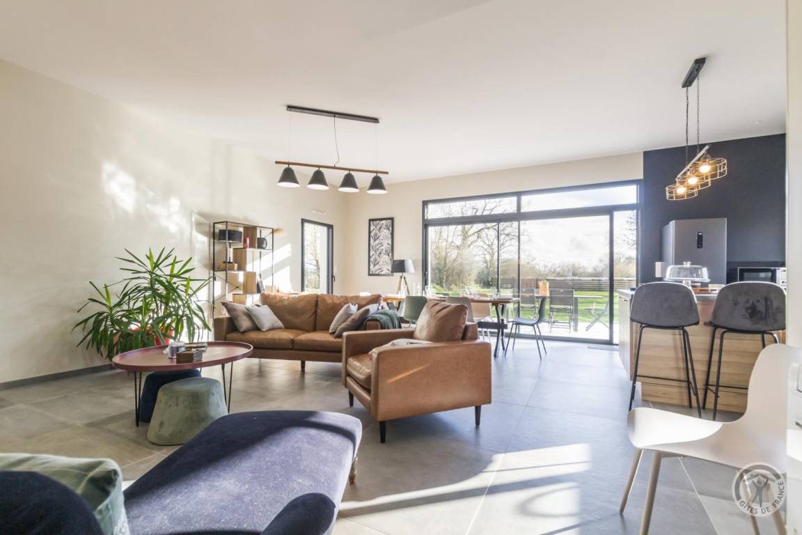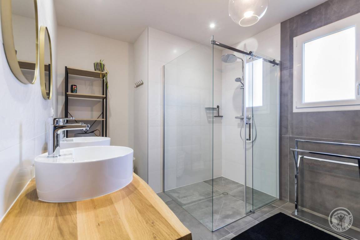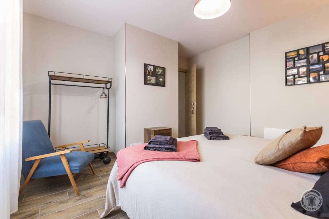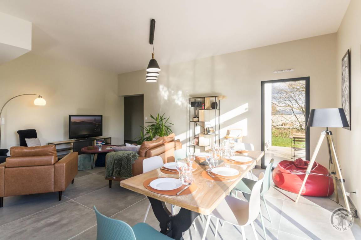 „Un gîte contemporain bien organisé, agréable à vivre: Ensemble cuisine-s. à manger- salon spacieux, très lumineux; sdd large, bien équipée; 2 des ch. nécessiteraient un peu plus de rangement. Peut- être une suggestion: Un store devant la grande baie vitrée au sud serait le bienvenu pour les journées estivales de plus en plus chaudes.“