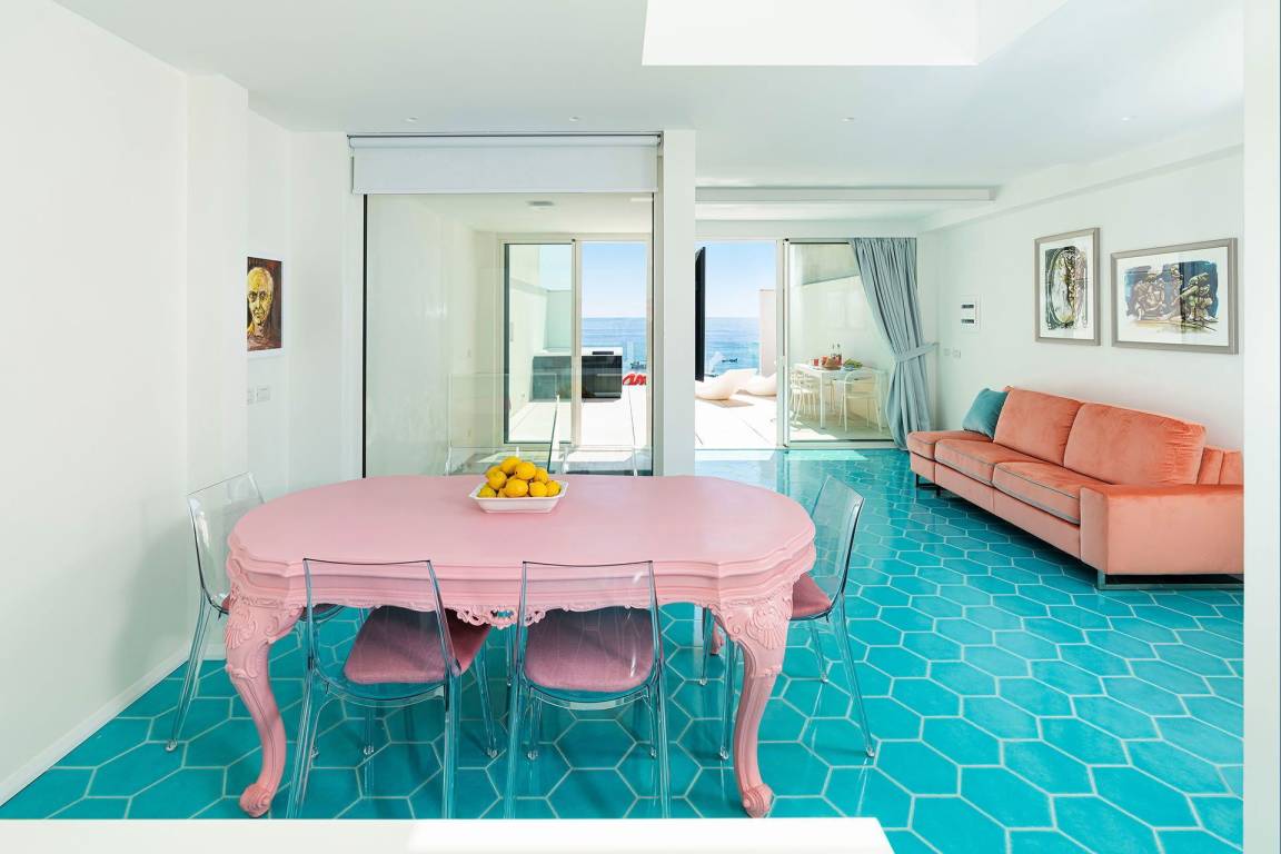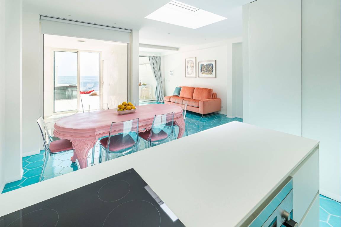 Die Ferienwohnung Casa Pink bietet Platz für bis zu 4 Gäste auf einer Ebene mit 2 Schlafzimmern und 3 Bädern. Das Erdgeschoss umfasst Wohnbereiche, die offen ineinander übergehen, sowie eine Küche, 2 Schlafzimmer und 3 Bäder mit Badewannen-Whirlpool. Eine private Terrasse erweitert den Wohnraum nach außen.