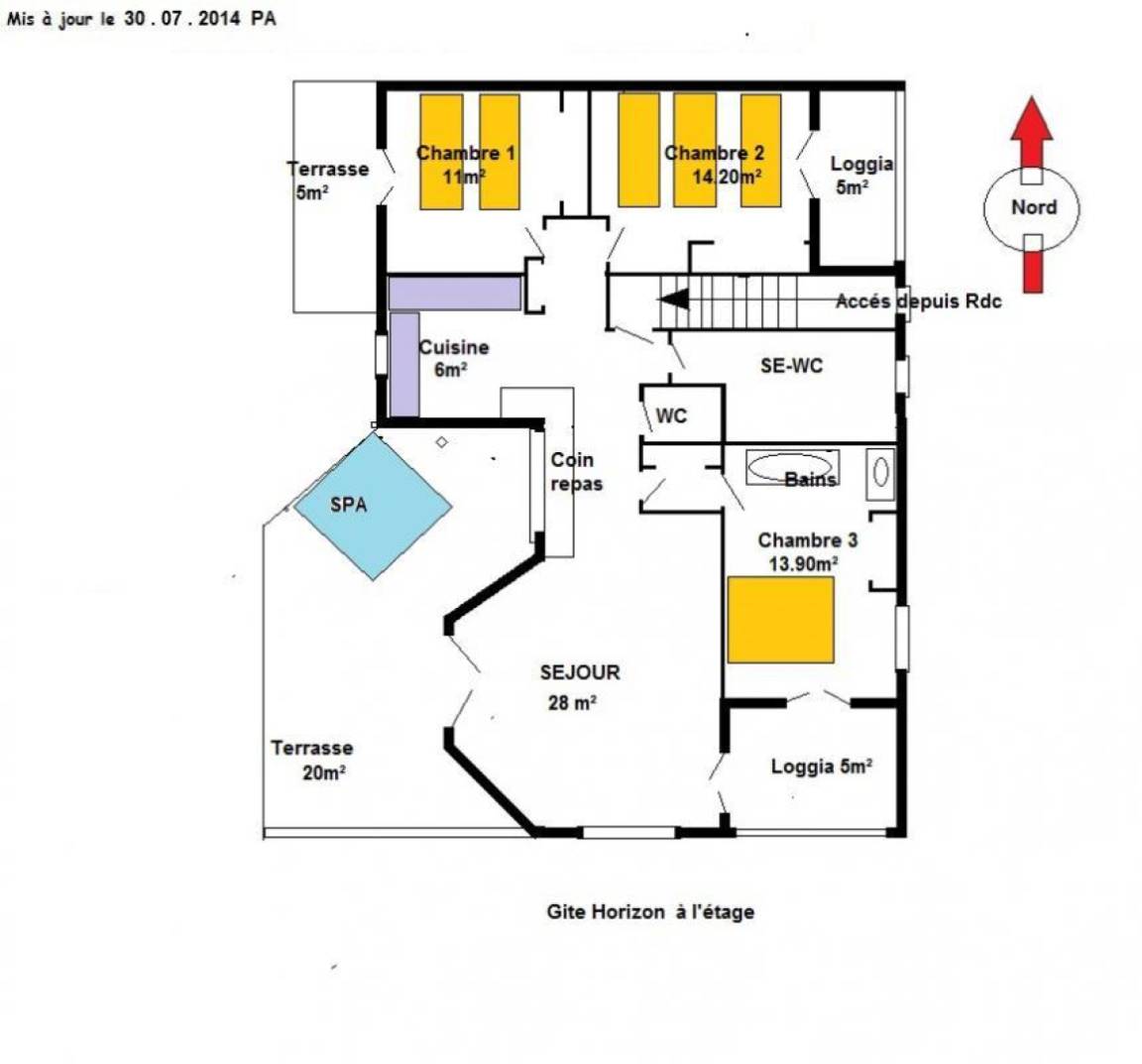 Das \"Horizon\ Ferienhaus" befindet sich im zweiten Stock über die \"Lisalou\ Hütte" Nr. 2226. Es hat eine große Terrasse 20 m ² mit private Spa 5 Personen, Garten mit Kleinmöbel Plancha (Stein). Innen wird vorgeschlagen, eine Küche, 3 Schlafzimmer mit Terrasse 5 m ², Bad und 1 Zimmer mit Badezimmer und privaten Toiletten (1 lit160 und 5 Betten 90), SE - wc und separates wc. Alle Zimmer sind mit Toiletten ausgestattet. Bettwäsche und Endreinigung am Ende stehen auf Anfrage zur Verfügung. Erwärmung durch umschaltbar. Ferienhaus Nichtraucher. Nach 17:00 nach Hause.