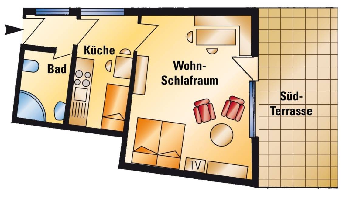 45 m² Ferienwohnung ∙ 1 Schlafzimmer ∙ 4 Gäste