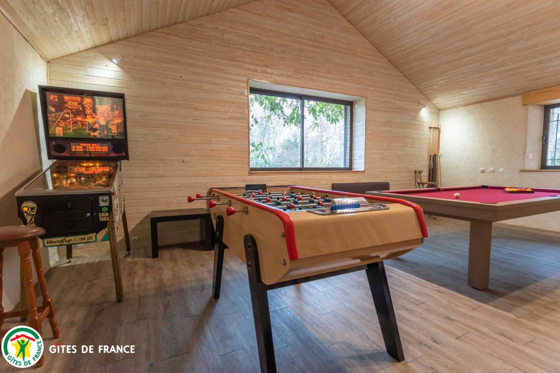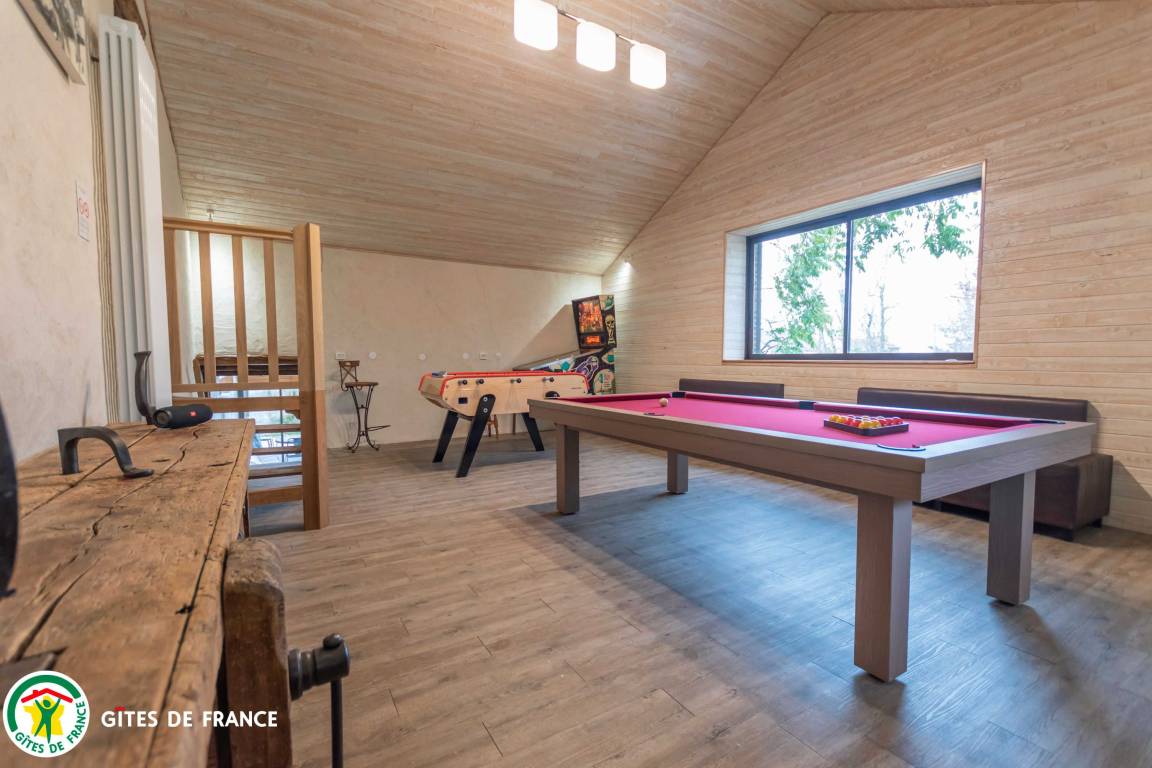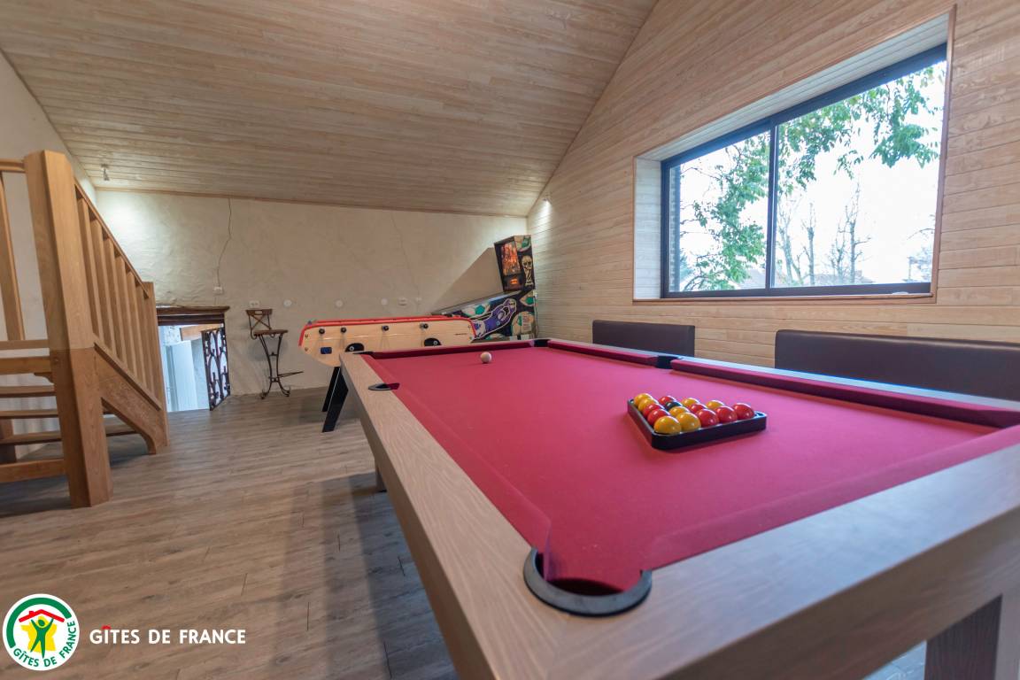 „Nous avons passé un très bon séjour pour les fêtes de fin d'année. Le gîte est vraiment chouette, avec de belles pièces (chambres comme séjour). Nous avons apprécié de pouvoir utiliser la piscine. Dommage qu'il faille sortir pour s'y rendre, et retourner dans le froid pour revenir au gîte. Nous avons malheureusement trouvé que les ustensiles de cuisine et la vaisselle est trop juste. Difficile de faire à manger pour 12 avec un seul fait tout ! Nous en avons parlé aux propriétaires qui se disent désolé de voir leur vaisselle volée régulièrement. Il nous semble qu'ils devraient vraiment faire un état des lieux avant et après dans ce cas (ce qui n'a pas été réalisé nous concernant). Mais n'hésitez pas, ce gîte est vraiment sympa...avec une salle de jeu (billard, babyfoot et flipper qui ont rassemblé régulièrement notre groupe d'amis cinquantenaires).“