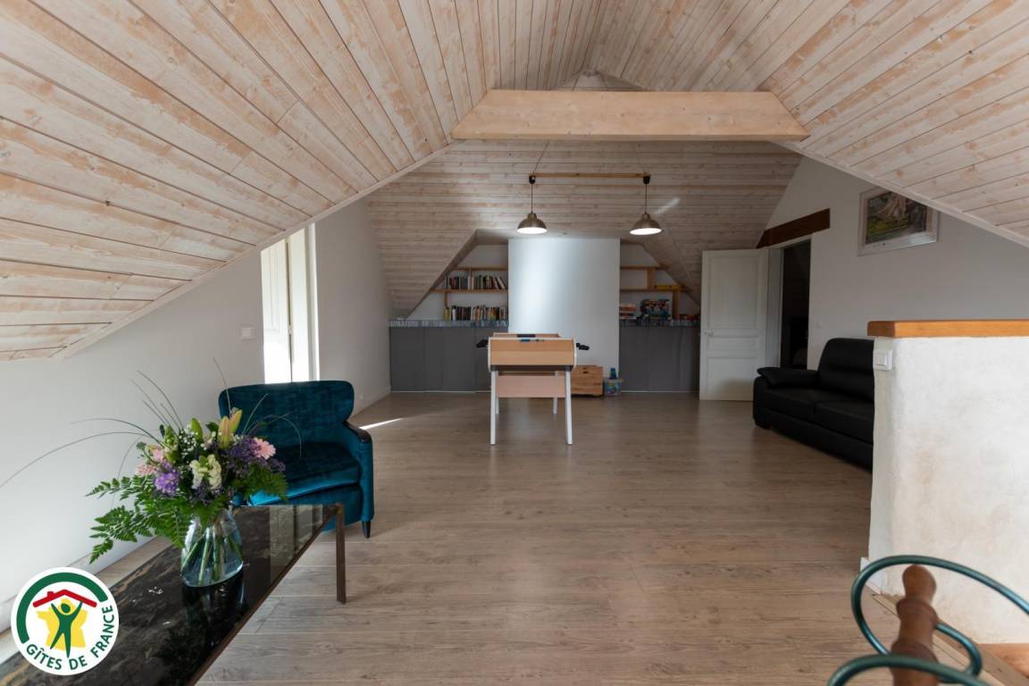 „Dans l'ensemble le gîte vraiment très agréable, le sauna et le SPA sont un plus, le babyfoot a été très apprécié, les extérieurs sont vraiment supers (les enfants ont adoré jouer sous les arbres et courir autour de la maison), l'environnement est plein d'activité et surtout le propriétaire est très attentionné!Seul bémol, on sent que le propriétaire vient de reprendre les lieux, il nous a manqué un peu de matériel pour une "collectivité" (notamment du matériel de cuisine).“