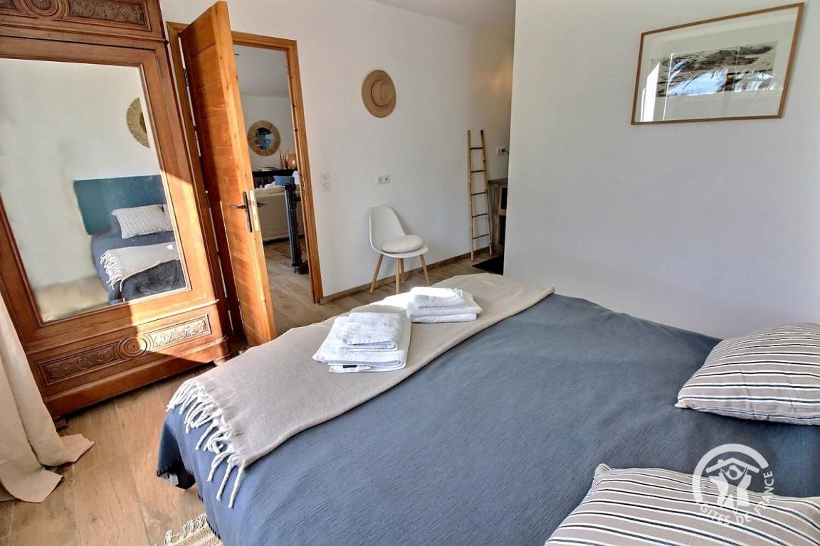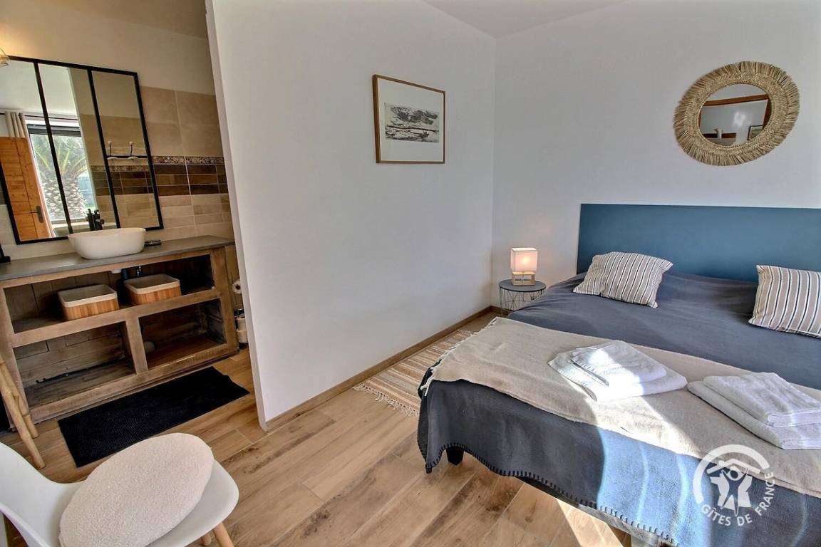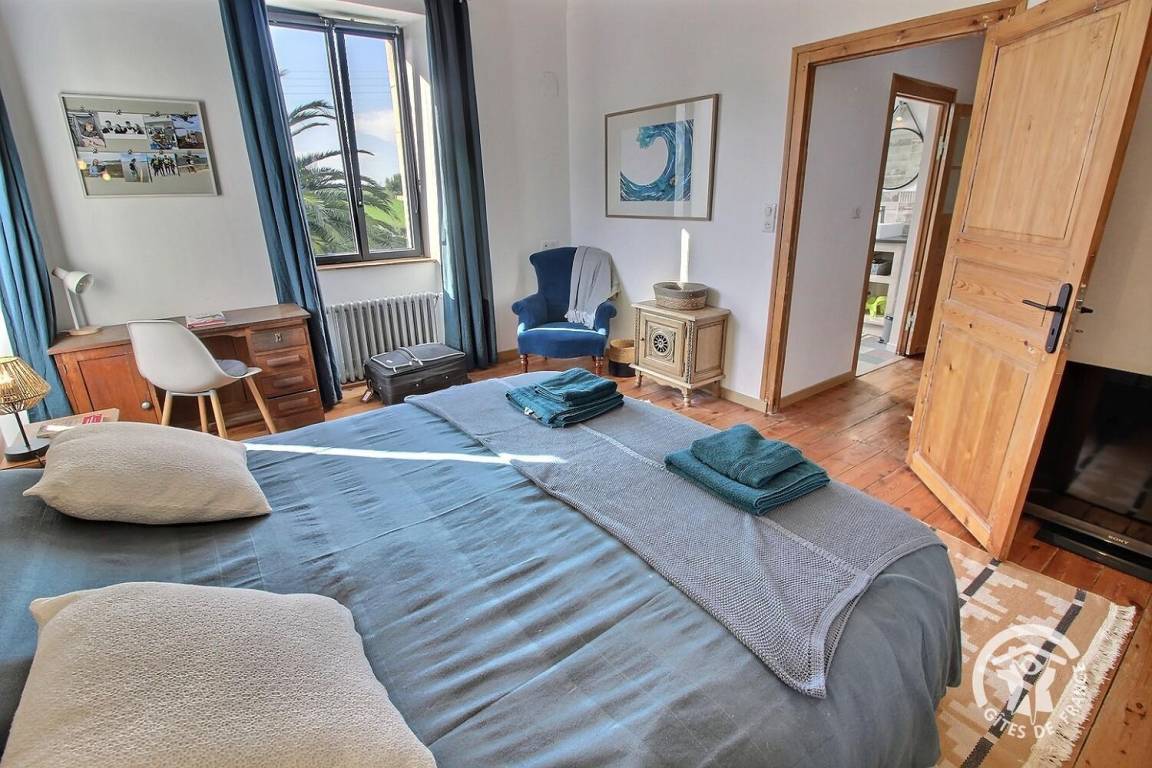 • Ein weiteres Schlafzimmer mit Meerblick, mit zwei 90x200-Betten, die zu einem 180x200-Bett zusammengestellt werden können.