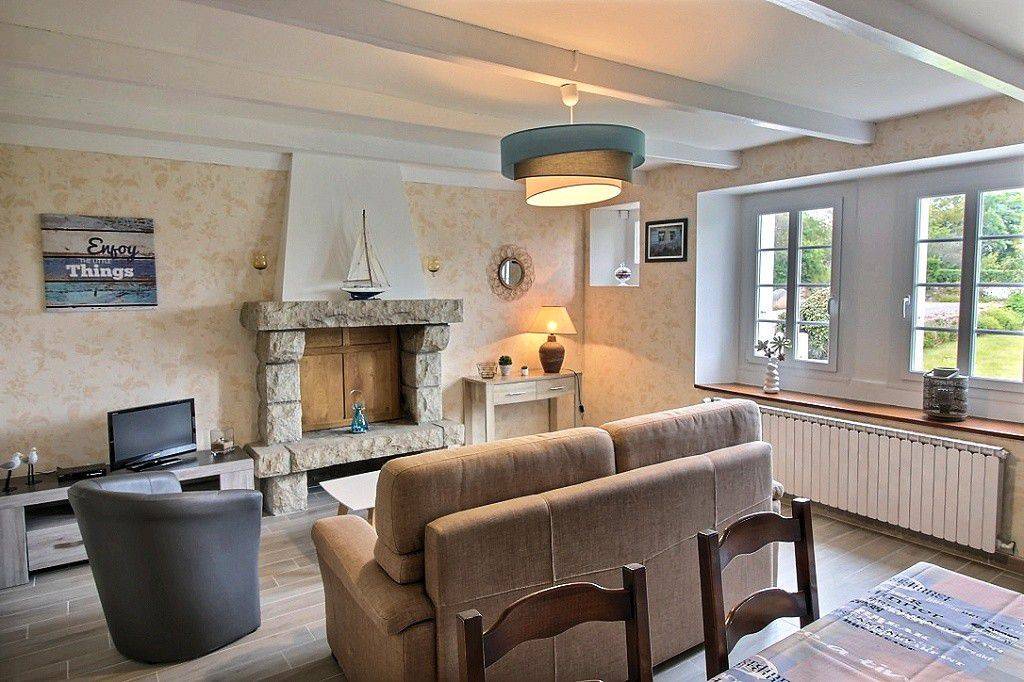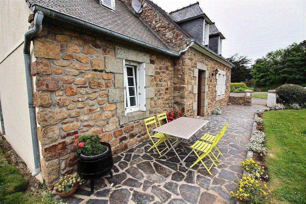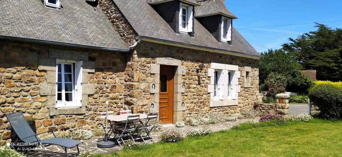 „Jolie maison bretonne (en granit donc) restaurée, très bien située dans un environnement calme et verdoyant à 500m de la mer. Très beau terrain fleuri et en pelouse, arboré entourant la maison. Tout est réuni pour passer un excellent séjour.“