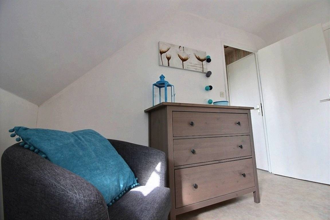- Obergeschoss: 2 Schlafzimmer mit 1 140x190-Bett und 1 90x190-Bett, separates WC mit Waschbecken. Bett, Stuhl und Babybadewanne vorhanden.