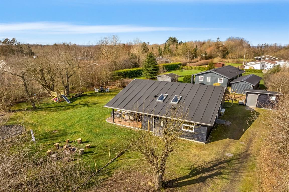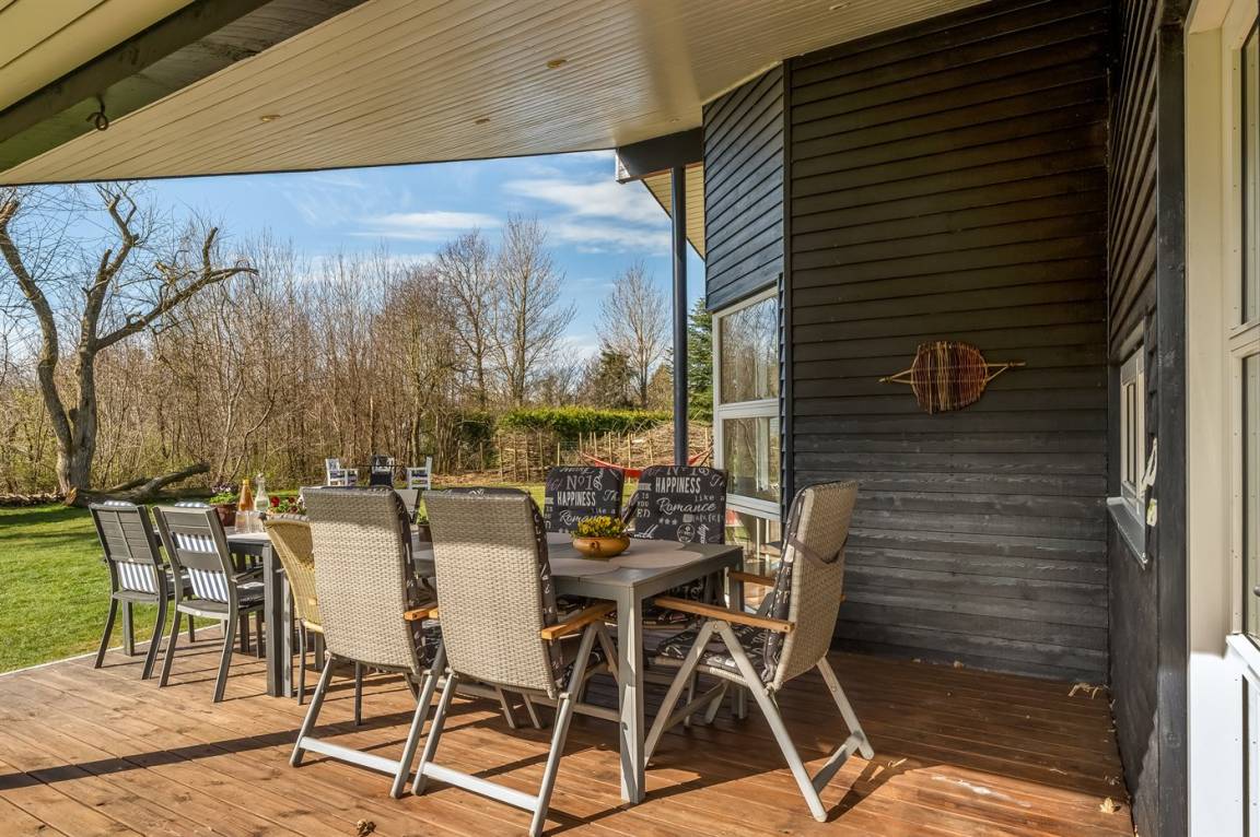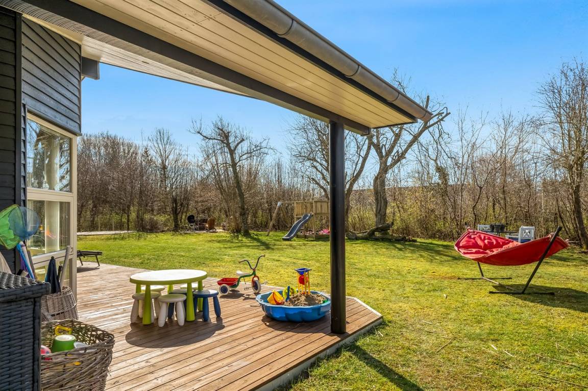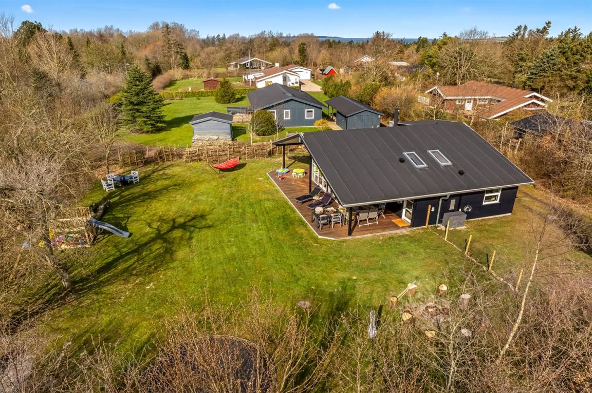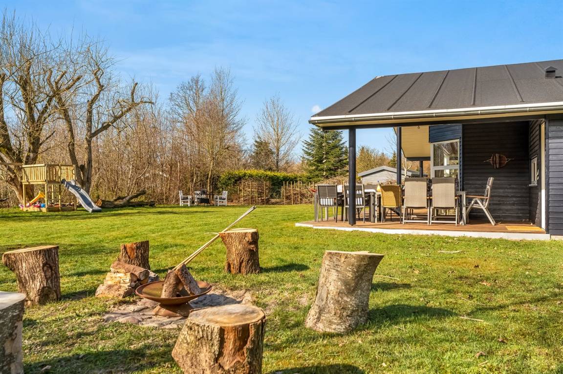 DraußenDie Ferienunterkunft liegt auf einem 1335 m² großen Naturgrundstück. Das Grundstück ist eingezäunt. Die Entfernung zum Fjord beträgt 700 m. Die nächste Einkaufsmöglichkeit liegt 3300 m entfernt. In einem Abstand von 12000 m gibt es einen Golfplatz. Es steht ein offenes Terrassenareal zur Verfügung. Außerdem gibt es überdachte Terrasse. Schaukel. Sandkasten. Trampolin. Spielturm. Die Entfernung zu einem Spielplatz beträgt 250 m.Lagerfeuerstelle. Es steht ein Grill zur Verfügung. Parkplatz auf dem Grundstück.