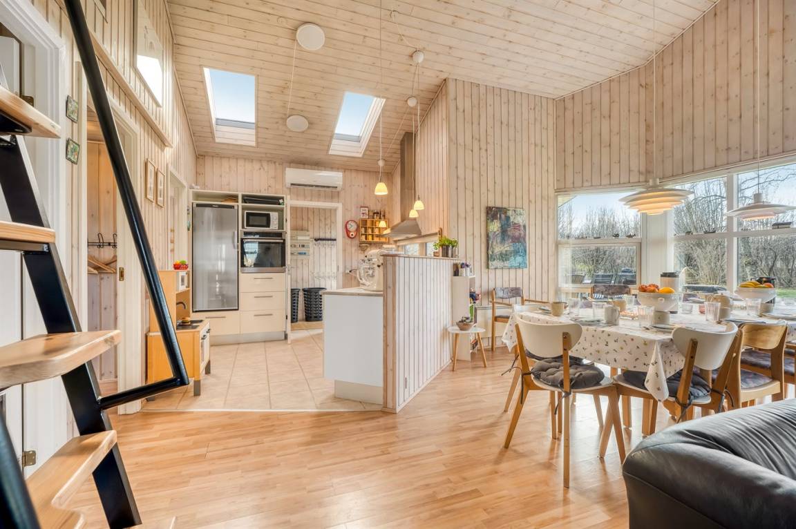 Das Ferienhaus eignet sich für 11 Personen. 2 der Schlafplätze eignen sich jedoch nur für größere Kinder (4-11 Jahre). Die Ferienunterkunft hat eine Wohnfläche von 96 m² und wurde 2005 gebaut. 2026 wurde die Ferienunterkunft teilweise renoviert. Es ist erlaubt 2 Haustiere mitzubringen. In der Ferienunterkunft ist eine energiesparende Luft zu Luft Wärmepumpe installiert. Die Ferienunterkunft ist mit Waschmaschine ausgestattet. Wäschetrockner. Tiefkühlmöglichkeit mit 120 Liter Nutzinhalt. Es gibt außerdem einen Kaminofen. Für die jüngsten Feriengäste ist 1 Kinderhochstuhl vorhanden. Wickeltisch.