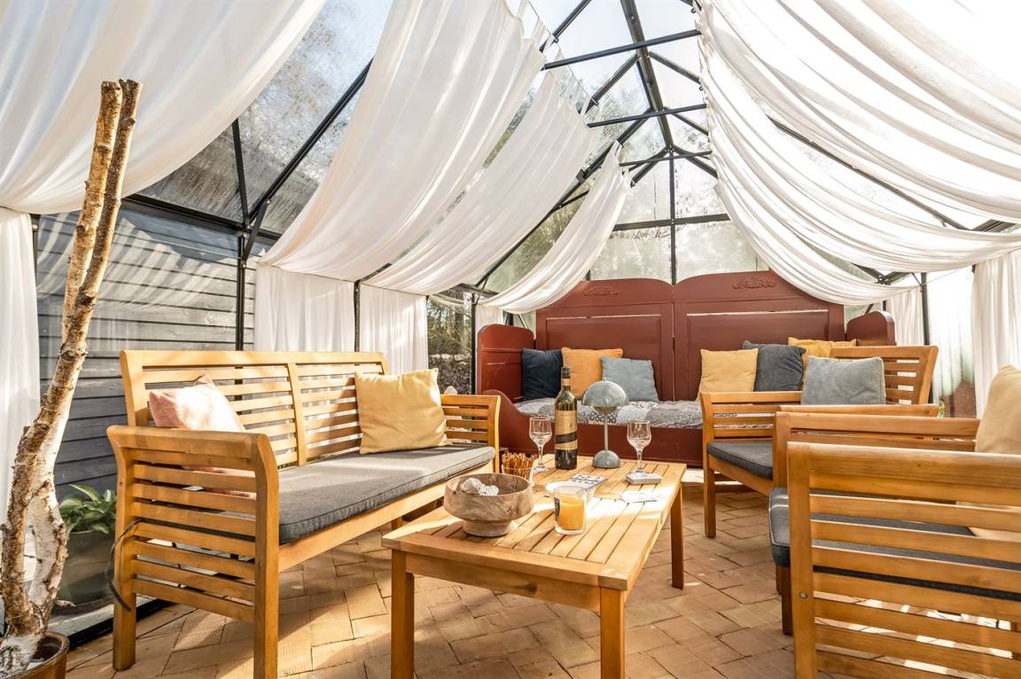 SchlafverhältnisseDie Schlafplätze verteilen sich auf 3 Schlafräume. 4 Schlafplätze in Doppelbetten. 2 Schlafplätze auf einer Doppelschlafcouch. 2 Schlafplätze auf Matratzen. 2 von diesen Schlafplätzen befinden sich im Gästehaus und 2 im offenen Obergeschoss. Ferner steht ein Kinderbett zur Verfügung.