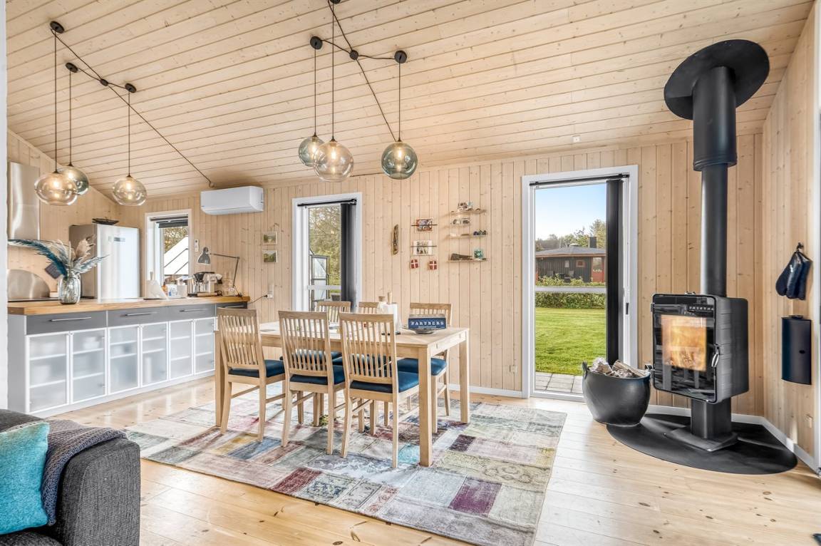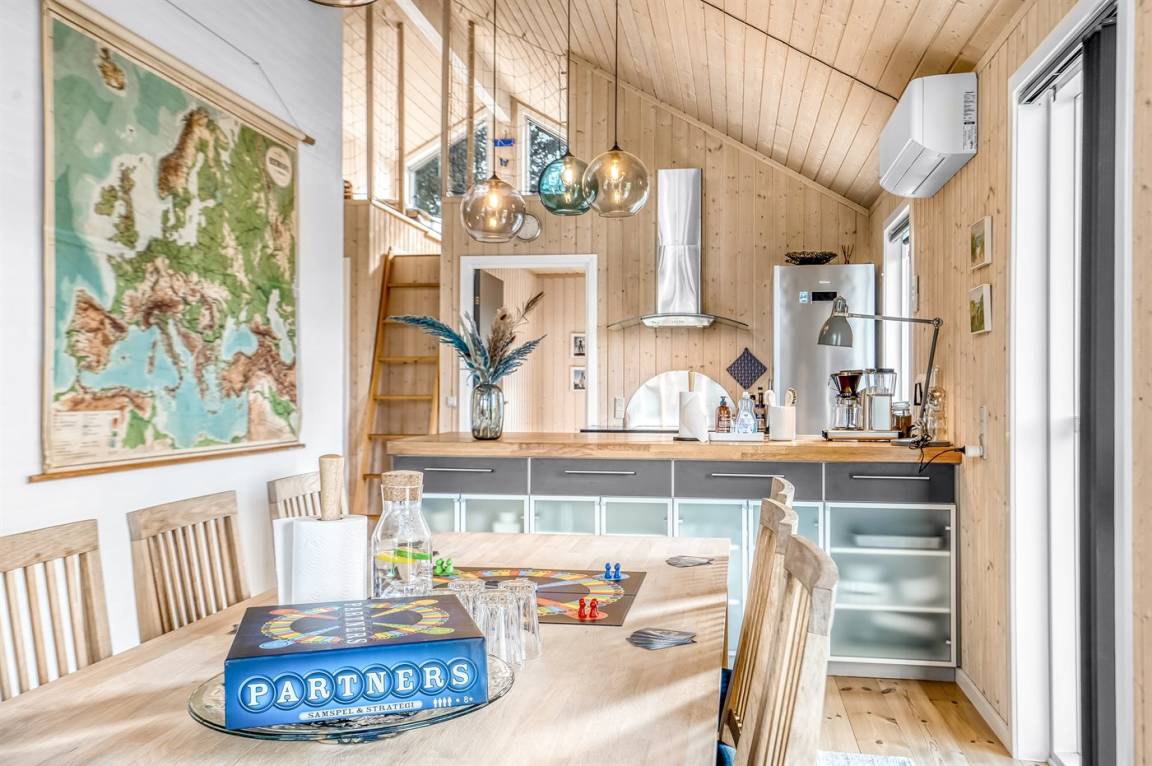 Das Ferienhaus eignet sich für 6 Personen sowie 1 Kleinkind bis zu 3 Jahren. Die Ferienunterkunft hat eine Wohnfläche von 96 m² und wurde 2005 gebaut. 2021 wurde die Ferienunterkunft teilweise renoviert. Haustiere dürfen nicht mitgebracht werden. Die Ferienunterkunft ist mit einer energiefreundlichen Luft-Luft-Wärmepumpe ausgestattet. Die Ferienunterkunft ist mit Waschmaschine ausgestattet. Wäschetrockner. Tiefkühlmöglichkeit mit 101 Liter Nutzinhalt. Es gibt außerdem einen Kaminofen. Für die jüngsten Feriengäste ist 1 Kinderhochstuhl vorhanden.