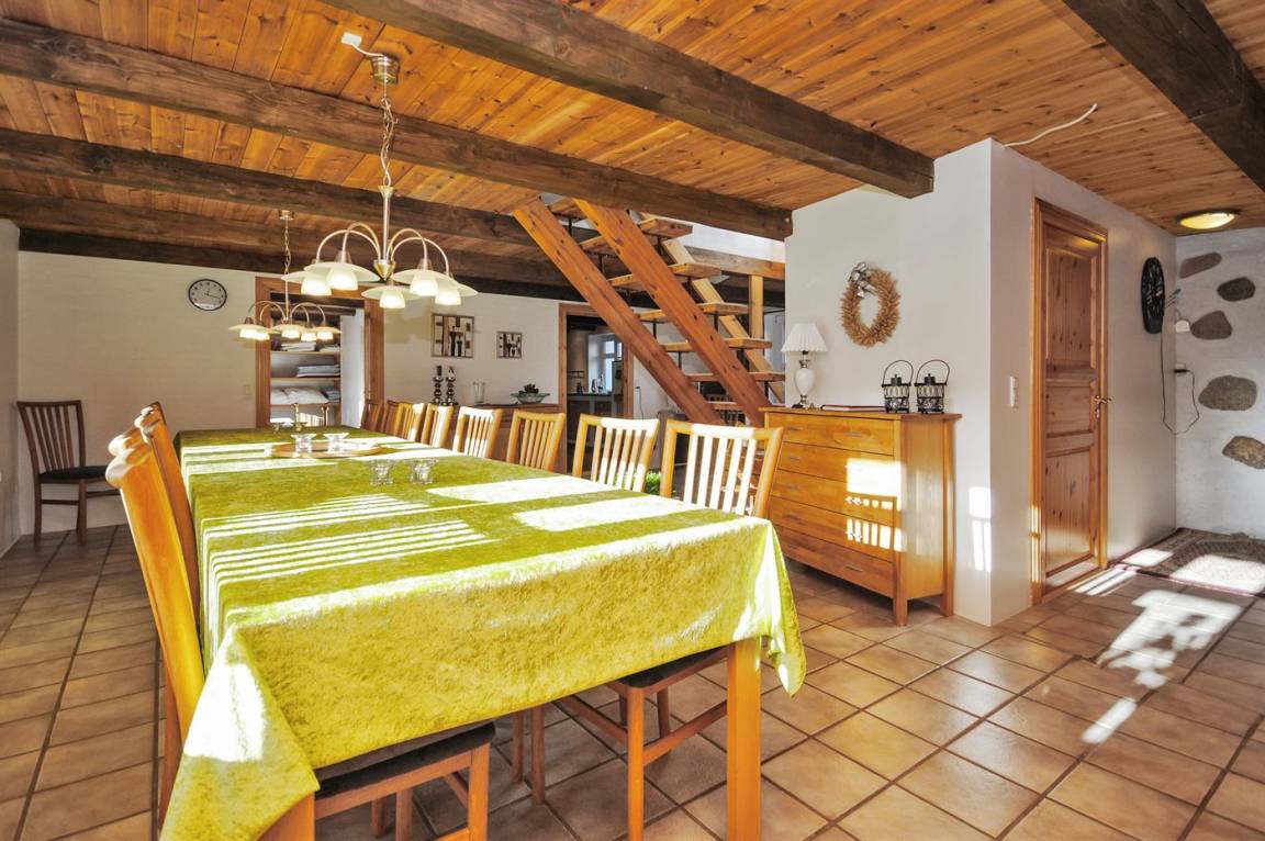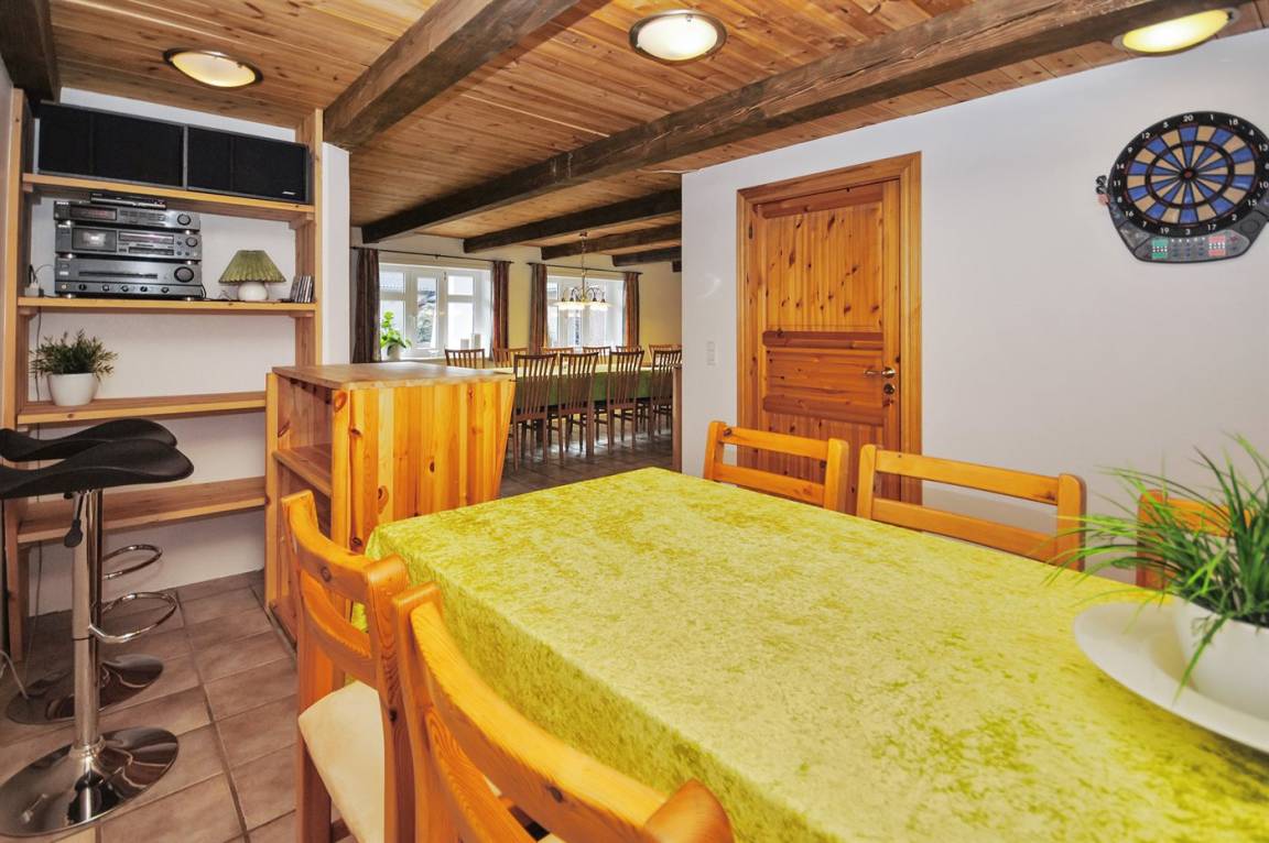 EinrichtungDas Ferienhaus eignet sich für 20 Personen sowie 2 Kleinkinder bis zu 3 Jahren. Die Ferienunterkunft hat eine Wohnfläche von 588 m², ist 2-stöckig, und wurde 2007 gebaut. 2015 wurde die Ferienunterkunft teilweise renoviert. Es ist erlaubt 2 Haustiere mitzubringen. Fußbodenheizung in allen Klinkerböden. Die Ferienunterkunft ist mit Waschmaschine ausgestattet. Wäschetrockner. Tiefkühlmöglichkeit mit 250 Liter Nutzinhalt. Für die jüngsten Feriengäste sind 2 Kinderhochstühle vorhanden.