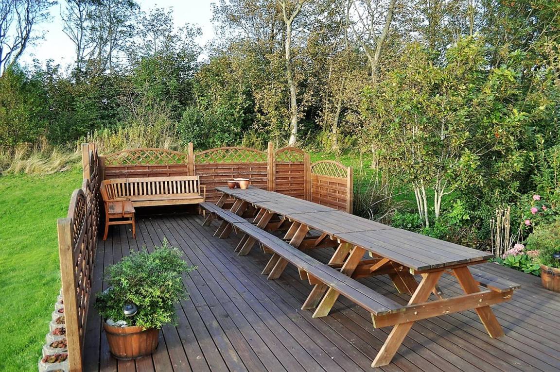Dieses geräumige und gemütlich eingerichtete Ferienhaus liegt auf einem sehr großen Grundstück nur ca. 3.000 m vom Strand am Limfjord entfernt. Zum Haus gehört ein großer Hobbyraum, der in einem separaten Gebäude eingerichtet ist. In diesem Gebäude finden Sie außerdem eine zusätzliche Küche, einen separaten Duschraum sowie eine Gästetoilette. Im Hobbyraum finden Sie u. a. Billard, Tischtennis, Tischfußball u. a. m. Die Nebenkosten (Strom und Wasser) sind im Mietpreis enthalten.