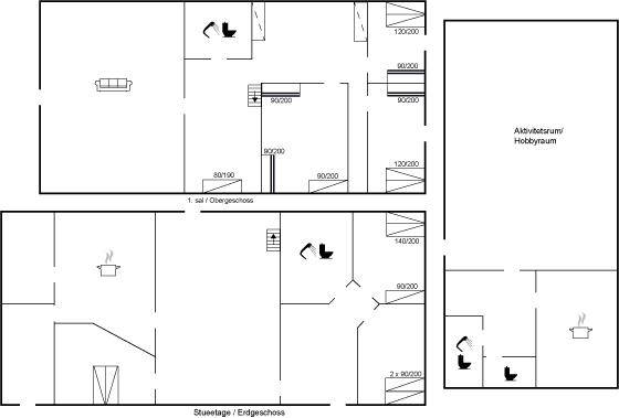 SchlafverhältnisseDie Schlafplätze verteilen sich auf 6 Schlafräume. 10 Schlafplätze in Doppelbetten.1 Schlafplatz in einem Einzelbett. 8 Schlafplätze in Etagenbetten.3 Schlafplätze auf Schlafcouchen (einzeln). Ferner stehen 2 Kinderbetten zur Verfügung.