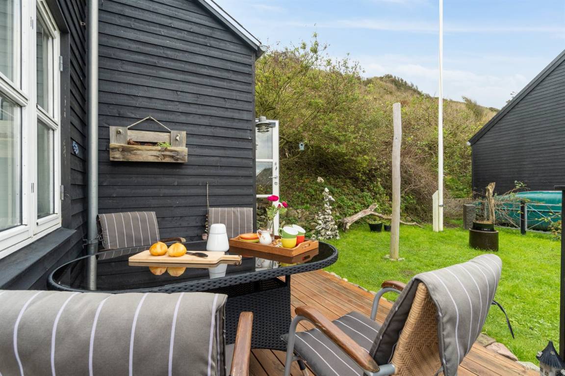 DraußenDie Ferienunterkunft liegt auf einem 144 m² großen Naturgrundstück. Die Entfernung zum Fjord beträgt 75 m. Die nächste Einkaufsmöglichkeit liegt 5000 m entfernt. In einem Abstand von 4000 m gibt es einen Golfplatz. Es steht ein 25 m² Terrassenareal zur Verfügung. Außendusche. Es stehen 3 Grills zur Verfügung.