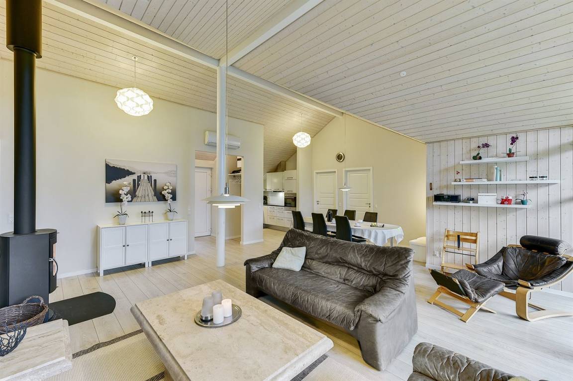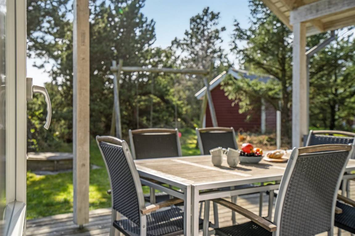 DraußenDie Ferienunterkunft liegt auf einem 955 m² großen Naturgrundstück. Die Entfernung zum Fjord beträgt 100 m. Die nächste Einkaufsmöglichkeit liegt 200 m entfernt. Es steht ein 20 m² Terrassenareal zur Verfügung. Außerdem gibt es 30 m² überdachte Terrasse. Schaukel. Sandkasten.