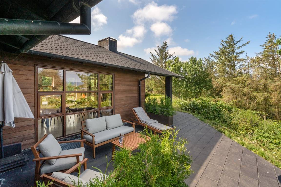 DraußenDie Ferienunterkunft liegt auf einem 800 m² großen Naturgrundstück. Die Entfernung zum Fjord beträgt 600 m. Die nächste Einkaufsmöglichkeit liegt 3000 m entfernt. In einem Abstand von 3000 m gibt es einen Golfplatz. Es steht ein 75 m² Terrassenareal zur Verfügung. Außerdem gibt es 27 m² überdachte Terrasse. Es steht ein Grill zur Verfügung. Parkplatz auf dem Grundstück.
