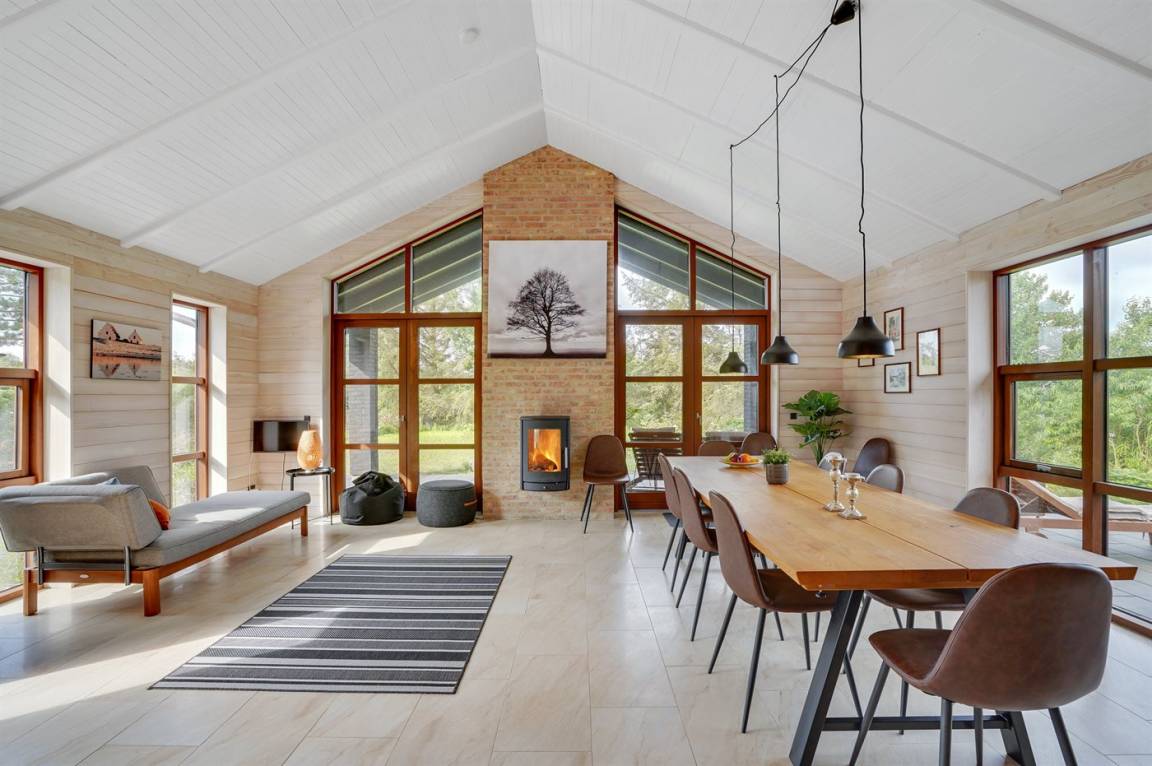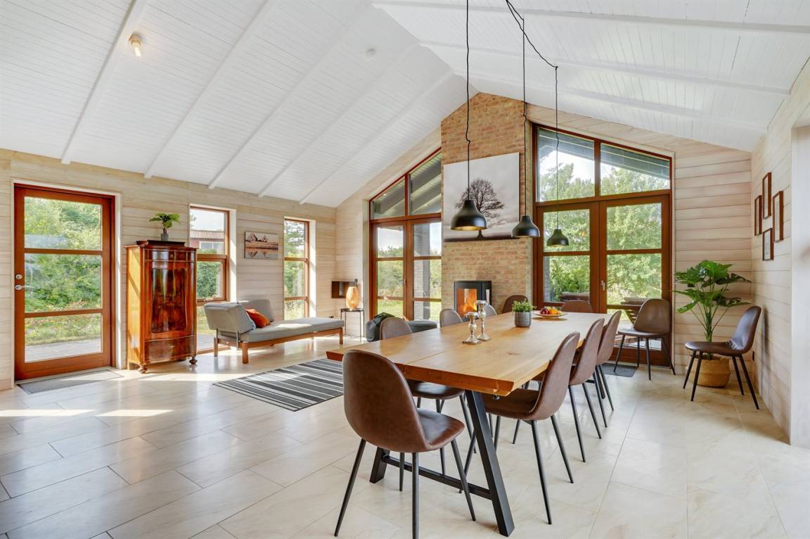 EinrichtungDas Ferienhaus eignet sich für 11 Personen sowie 1 Kleinkind bis zu 3 Jahren. 3 der Schlafplätze eignen sich jedoch nur für größere Kinder (4-11 Jahre). Die Ferienunterkunft hat eine Wohnfläche von 235 m², ist 2-stöckig, und wurde 2019 gebaut. Es ist erlaubt 1 Haustier mitzubringen. Die Ferienunterkunft ist mit energiesparender Wärmepumpe ausgestattet. Es gibt Erdwärme. Fußbodenheizung in allen Räumen. Die Ferienunterkunft verfügt über einen Waschtrockner. Tiefkühlmöglichkeit mit 150 Liter Nutzinhalt. Es gibt außerdem 2 Kaminöfen.
