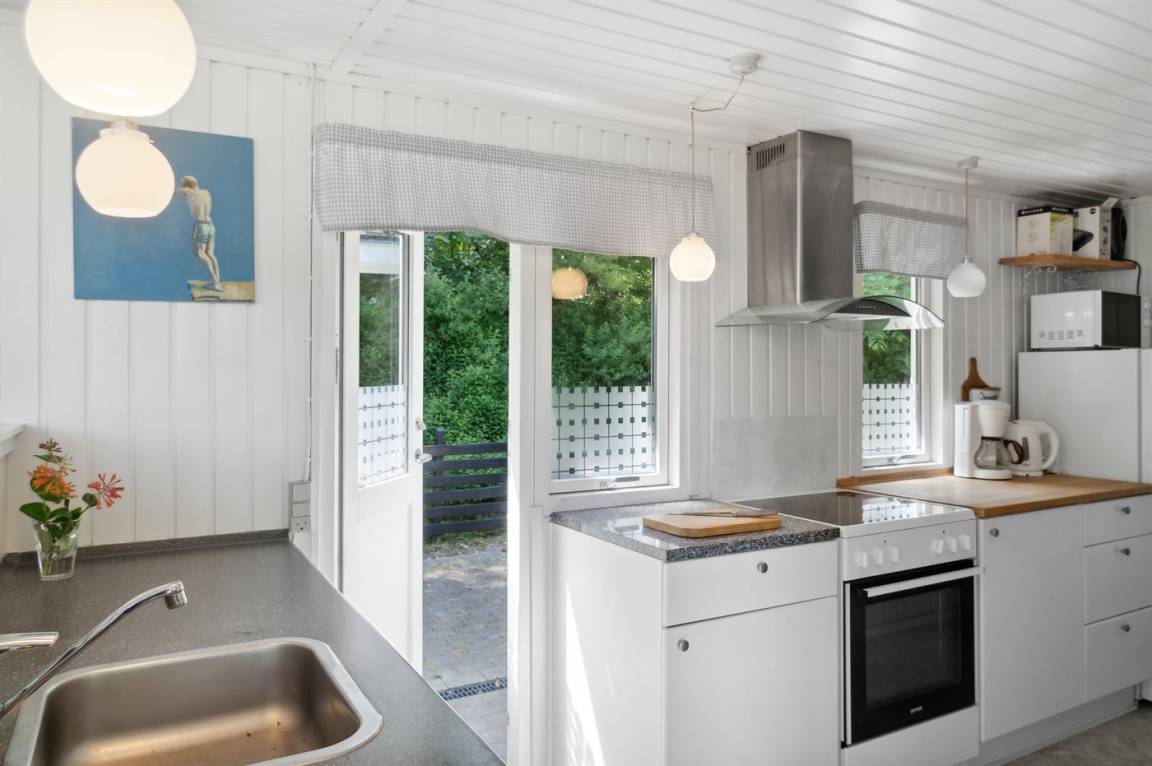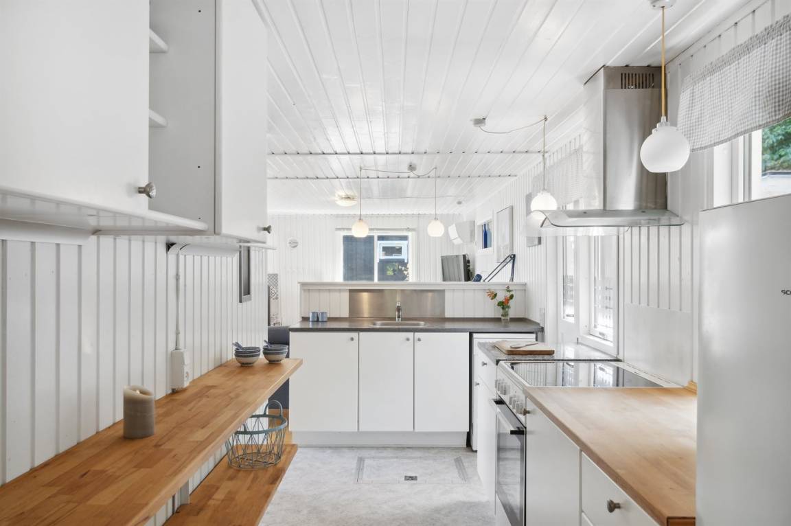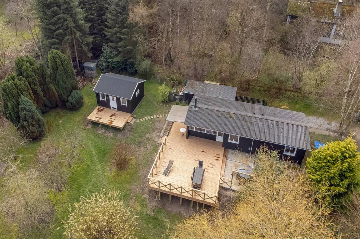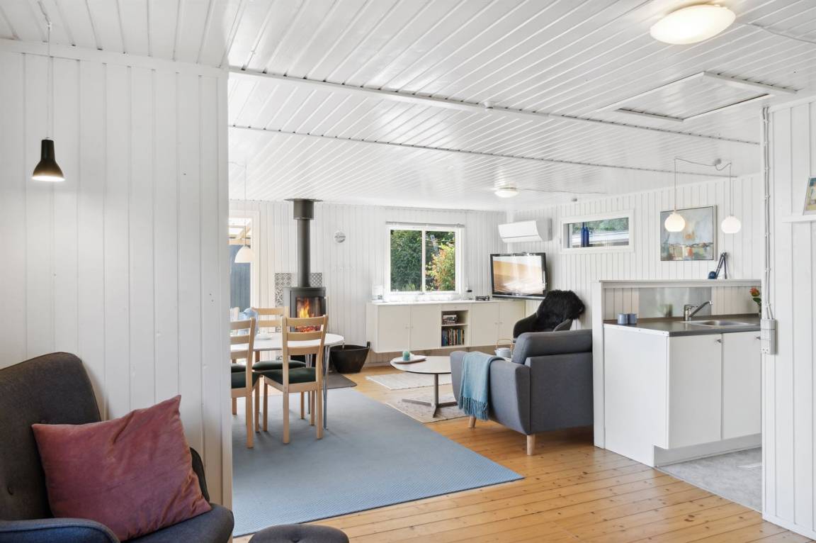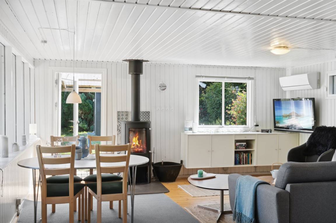 DraußenDie Ferienunterkunft liegt auf einem 1820 m² großen Naturgrundstück. Die Entfernung zum Fjord beträgt 400 m. Die nächste Einkaufsmöglichkeit liegt 5000 m entfernt. Es steht ein 12 m² Terrassenareal zur Verfügung. Außerdem gibt es 4 m² überdachte Terrasse. Geräteraum. Es steht ein Grill zur Verfügung. Parkplatz auf dem Grundstück.