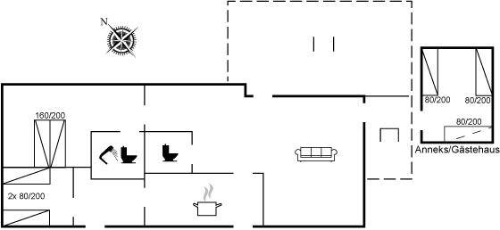 SchlafverhältnisseDie Schlafplätze verteilen sich auf 3 Schlafräume. 2 Schlafplätze in einem Doppelbett. 4 Schlafplätze in Einzelbetten. Ein Schlafplatz auf einer Schlafcouch. 3 von diesen Schlafplätzen befinden sich im Gästehaus.