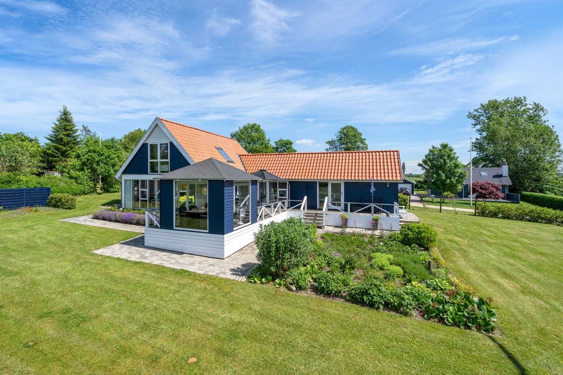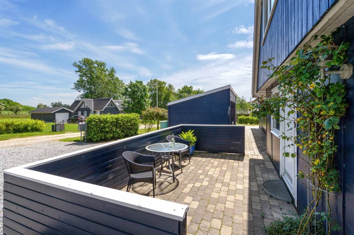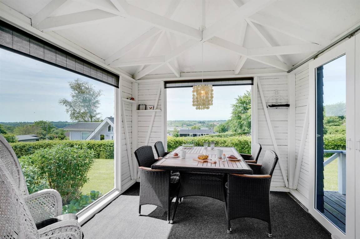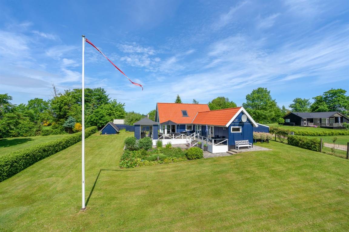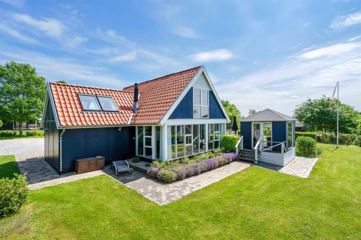 DraußenDie Ferienunterkunft liegt auf einem 1745 m² großen Gartengrundstück. Die Entfernung zum Fjord beträgt 700 m. Es gibt einen Badesteg in der Nähe. Die nächste Einkaufsmöglichkeit liegt 2000 m entfernt. In einem Abstand von 5800 m gibt es einen Golfplatz. Es steht ein 30 m² Terrassenareal zur Verfügung. Davon insgesamt 10 m² geschlossene Terrasse. Zutritt zu einem Wintergarten. Parkplatz auf dem Grundstück.