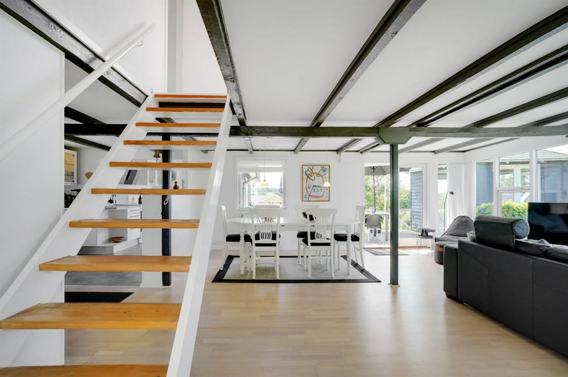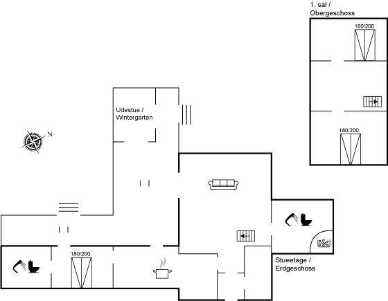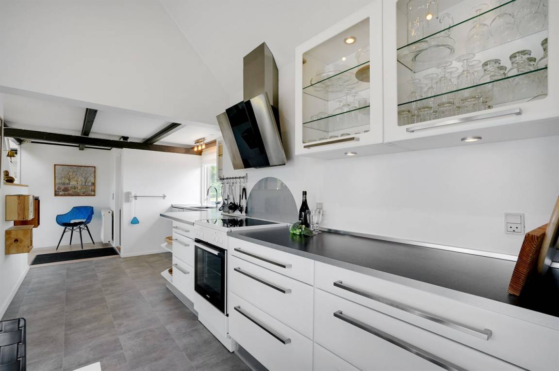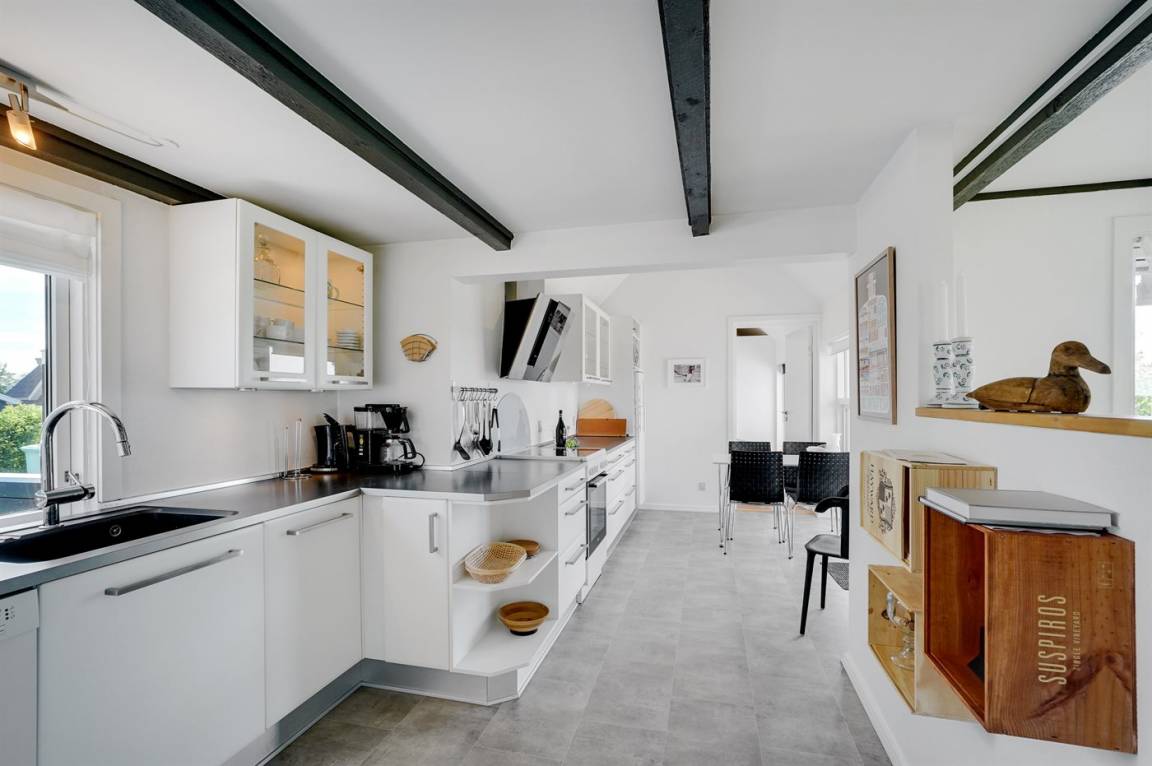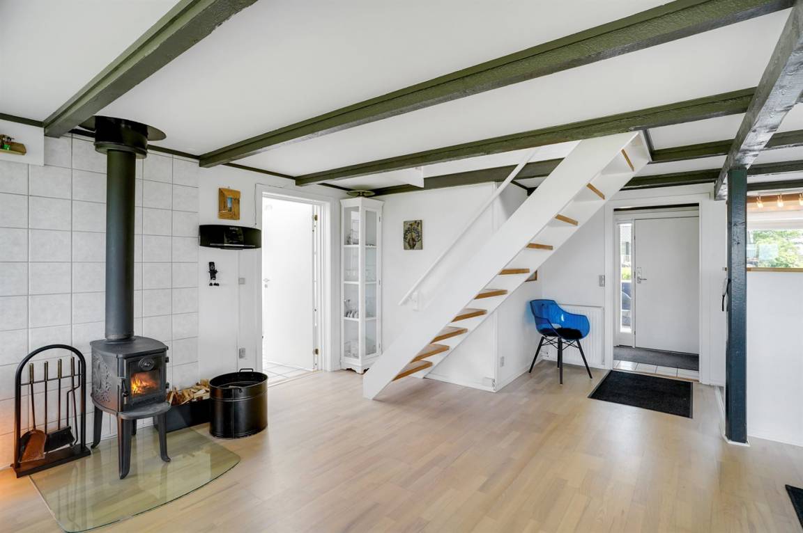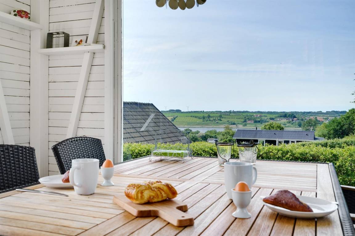 DraußenDie Ferienunterkunft liegt auf einem 1745 m² großen Gartengrundstück. Die Entfernung zum Fjord beträgt 700 m. Es gibt einen Badesteg in der Nähe. Die nächste Einkaufsmöglichkeit liegt 2000 m entfernt. In einem Abstand von 5800 m gibt es einen Golfplatz. Es steht ein 30 m² Terrassenareal zur Verfügung. Davon insgesamt 10 m² geschlossene Terrasse. Zutritt zu einem Wintergarten. Parkplatz auf dem Grundstück.